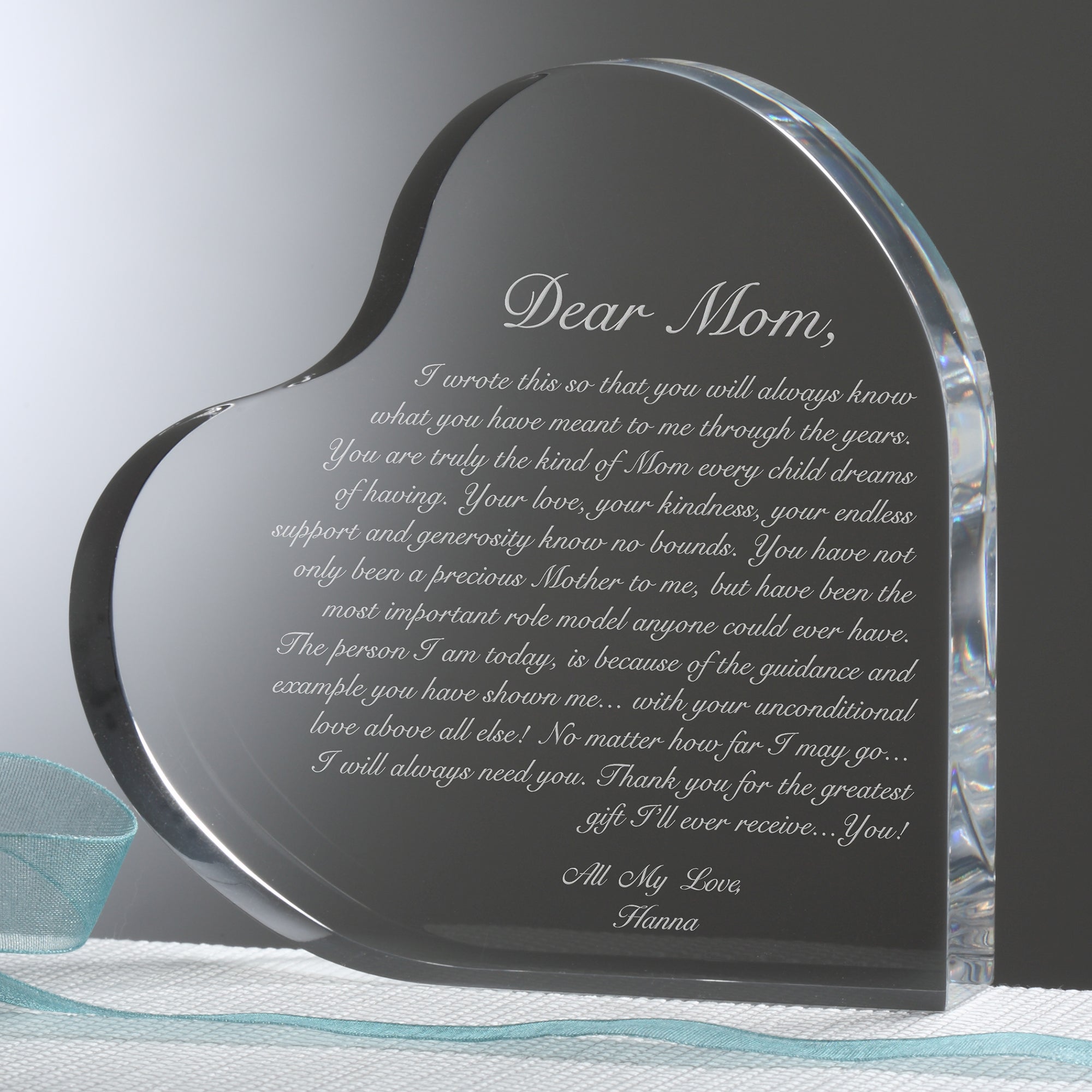 With our A Letter To Mom Personalized Heart Sculpture, tell your mom, grandma, wife or any significant other what she means to you and we will put it in writing... forever.
