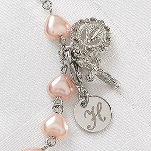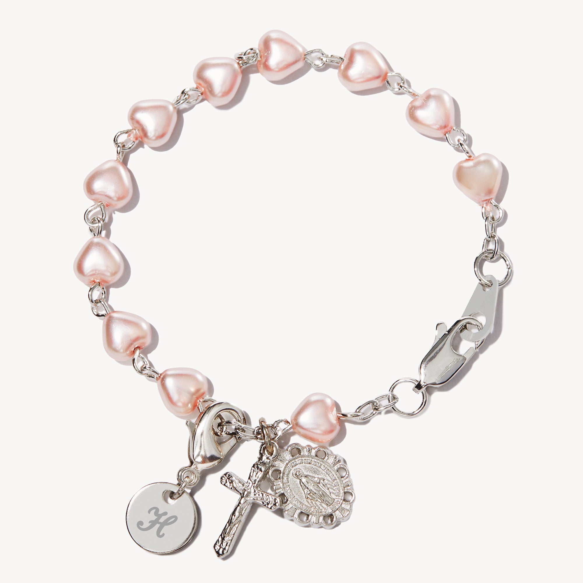 Beautiful and elegant, our Precious Heart Rosary Engraved Monogram Bracelet makes a great gift for a First Communion, or any special religious occasion.