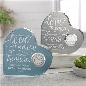 Our Memory Becomes A Treasure Personalized Colored Heart Clock will keep the memory of a loved one alive. Makes a truly unique keepsake to treasure always.