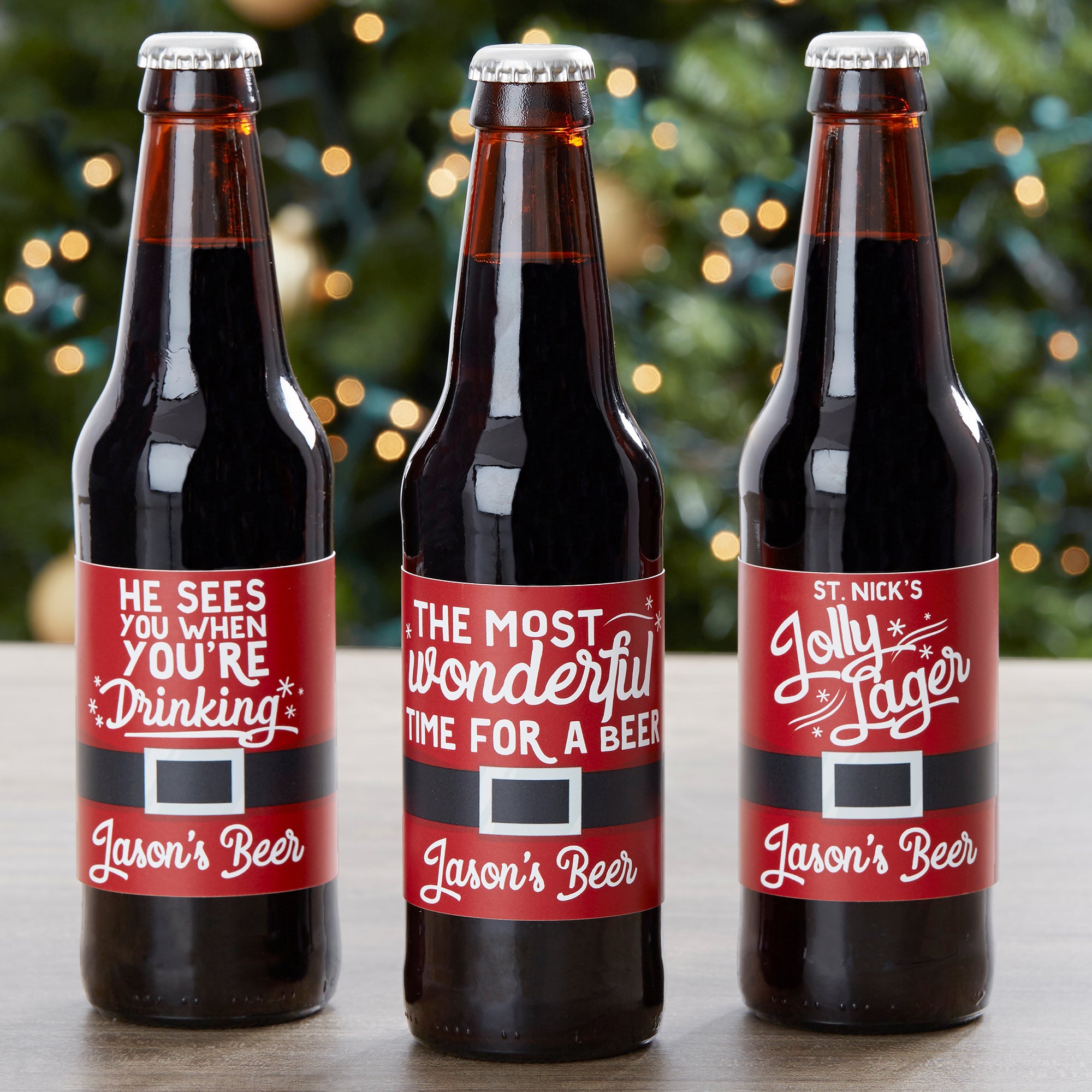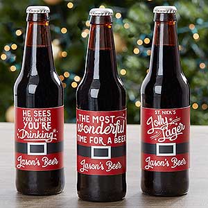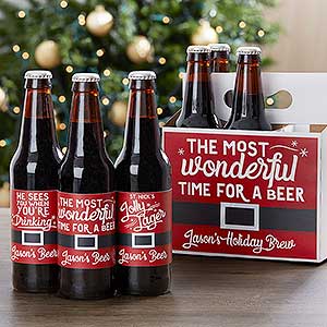 Celebrate the holidays with a 6 pack custom made for them with our Wonderful Time For A Beer Personalized Beer Bottle Labels & Carrier.