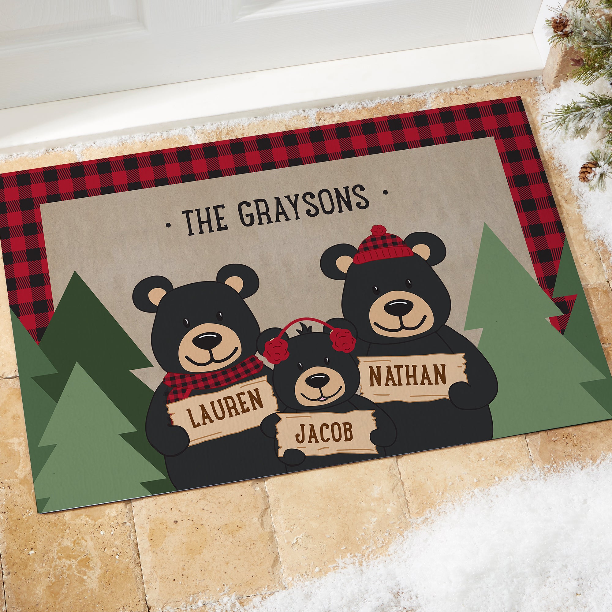 Give friends and family a whimsical welcome this holiday season with our Holiday Bear Family Personalized Doormats. Our adorable bear family design, surrounded with a buffalo check border is the perfect piece of holiday decor.