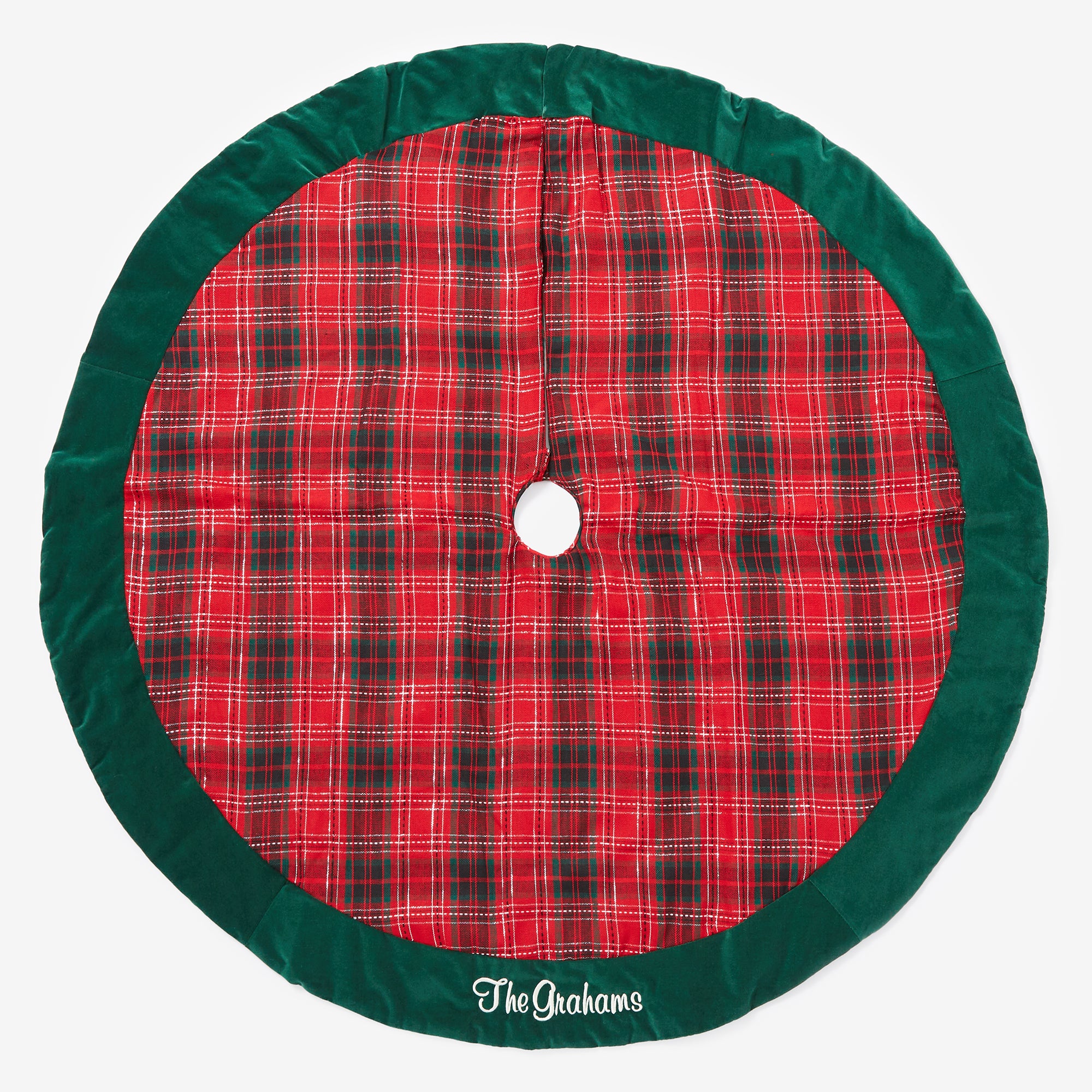 Wrap your tree in festive fashion with our exclusive Holiday Plaid Personalized Tree Skirt.