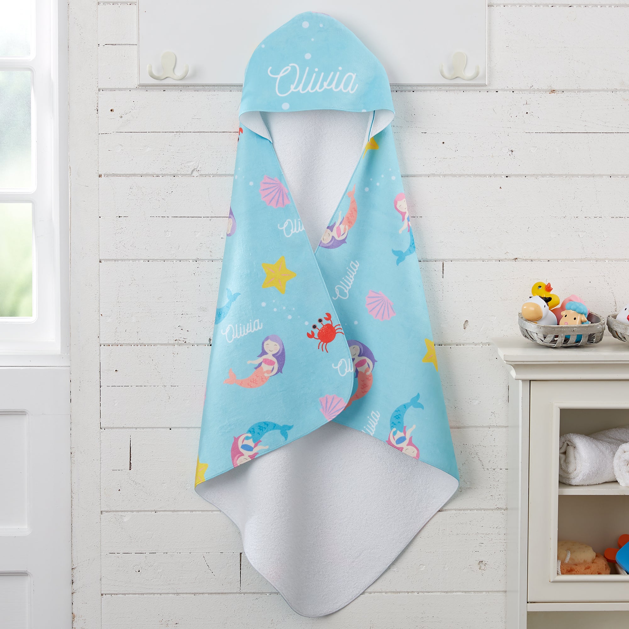Our Mermaid Adventure Personalized Baby Hooded Towel will soak up all the suds to make your little one warm and dry as quick as possible. This personalized baby hooded towel makes for a fun bath piece for home, beach or pool side.