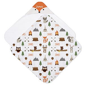 Product Information 20618-F - Woodland Adventure Fox Personalized Baby Hooded Towel