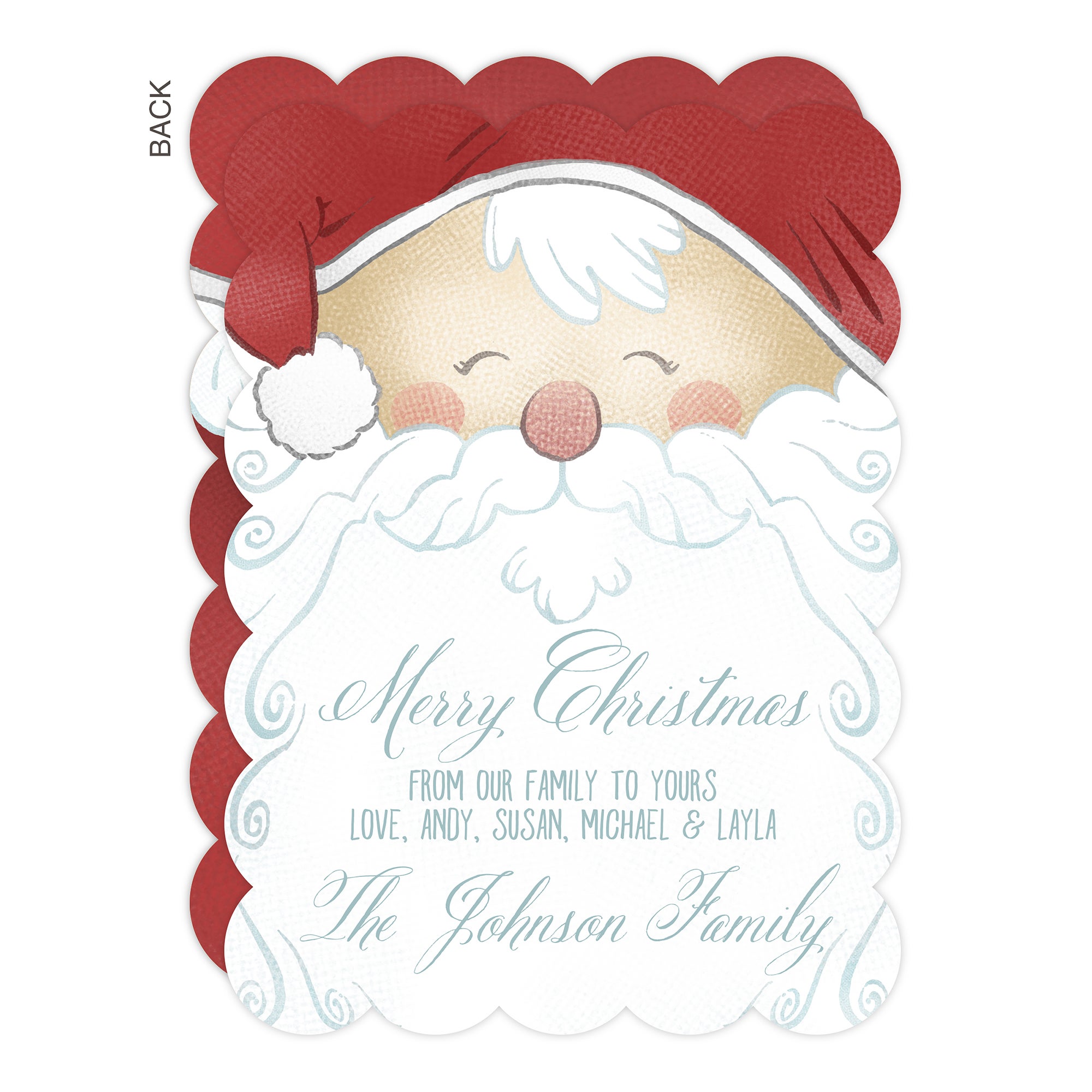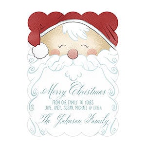 Spread holiday cheer this Season by sending customized wishes to your friends and family with this cute Santa design that is sure to warm the recipients heart.