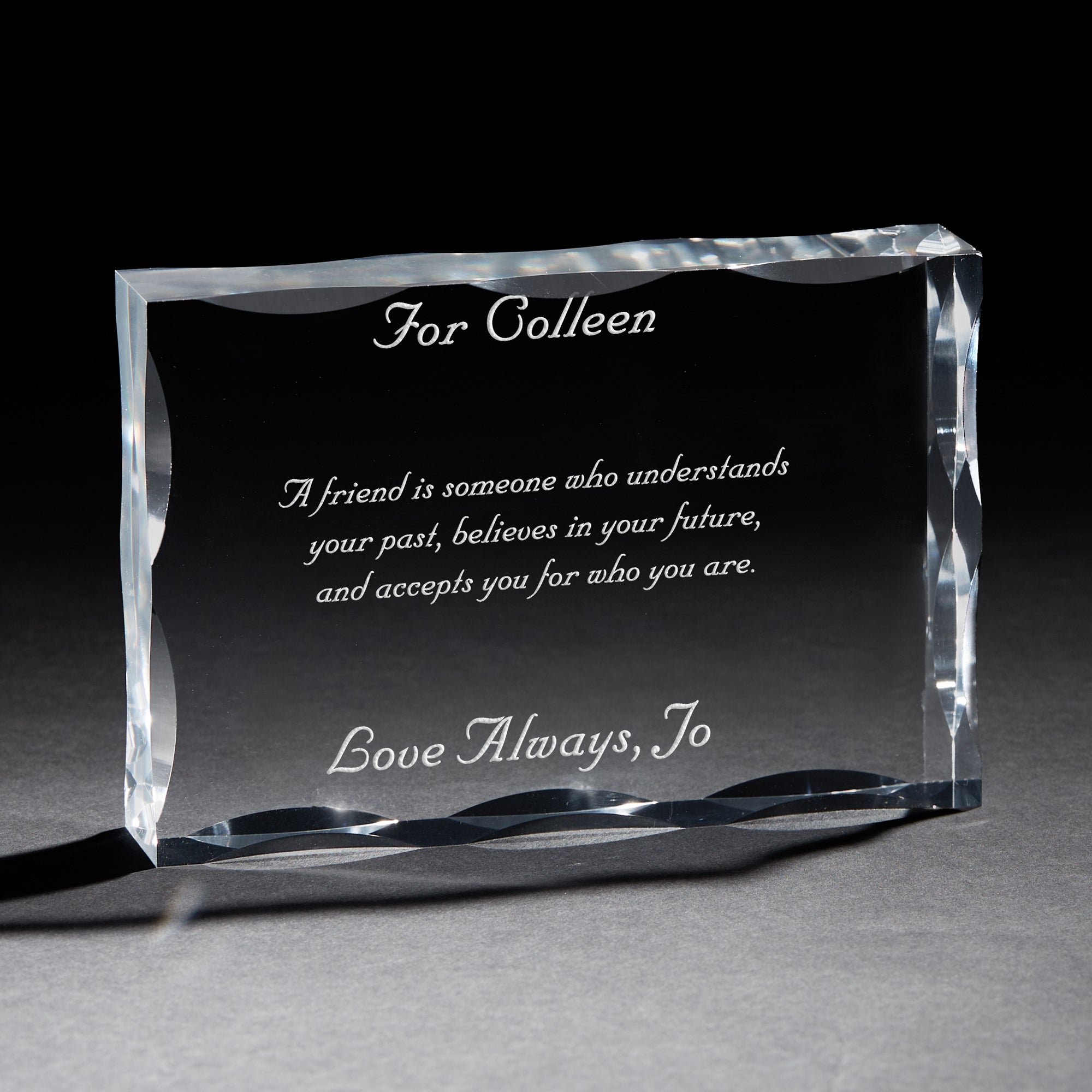 The skillful, reverse-laser engraving process provides a stunning transparent mirage, creating a magnificent loving memento for display.