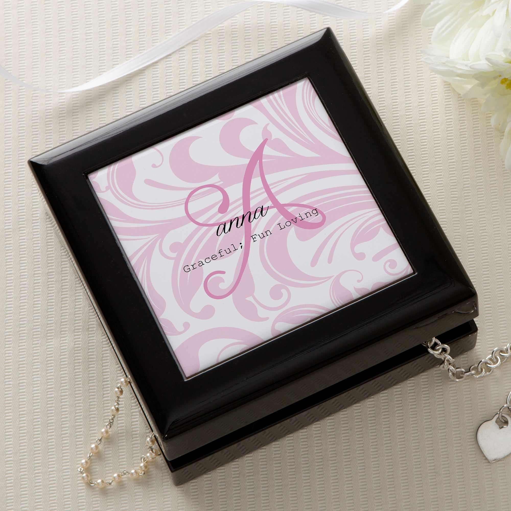 Our Name Meaning Personalized Keepsake Box is perfect for her jewelry, trinkets, photos & keepsakes. A very impressive piece and quality accessory for her dresser or nightstand, of course, personalized just for her!