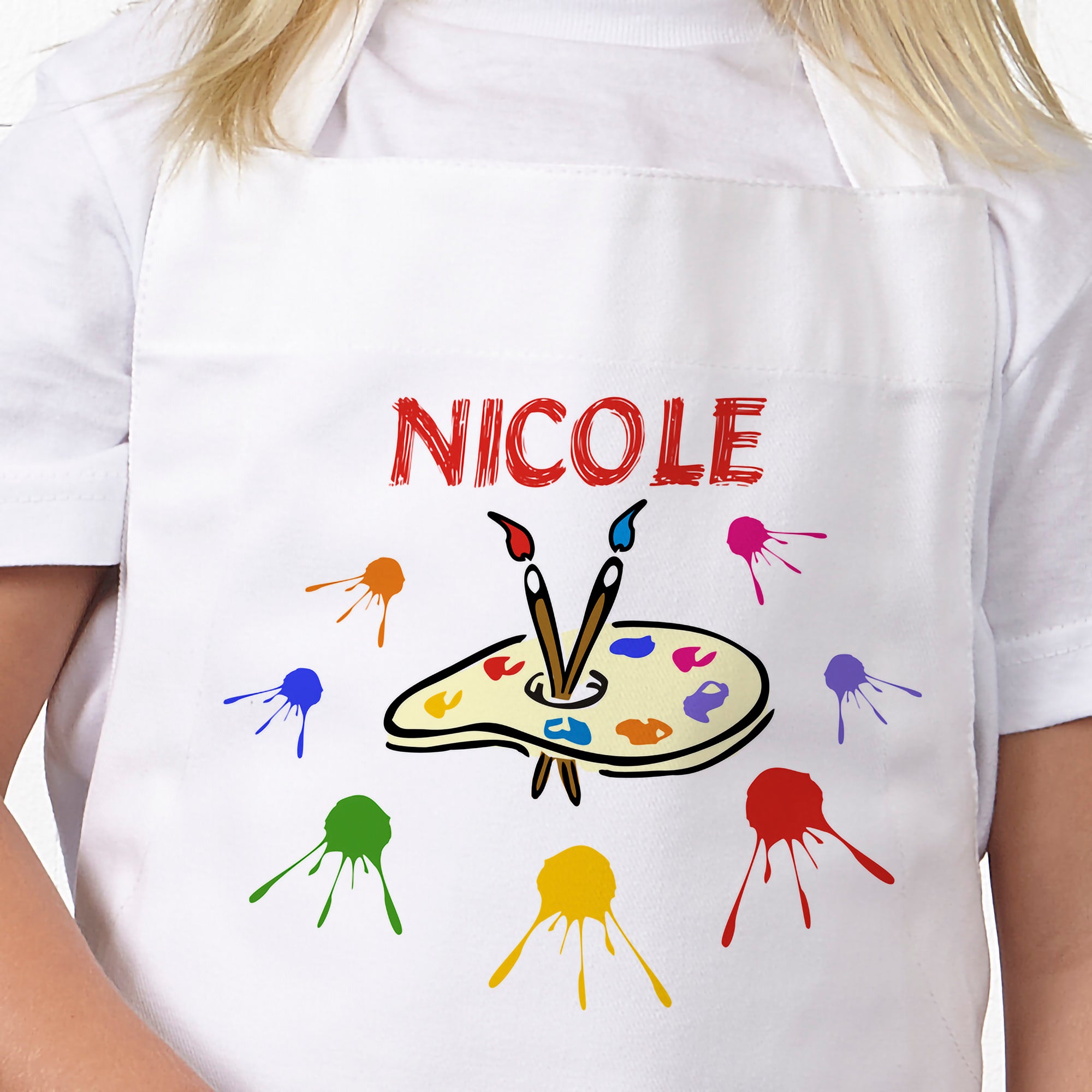 • Personalize with any name, printed in vibrant red above a colorful paint palette