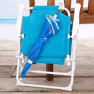 The Kid’s Beach Chair & Personalized Umbrella Set provides any child with perfect seating for any summer outing, outdoor event or hanging by the pool.