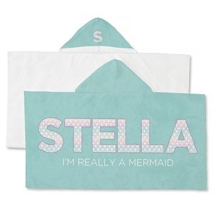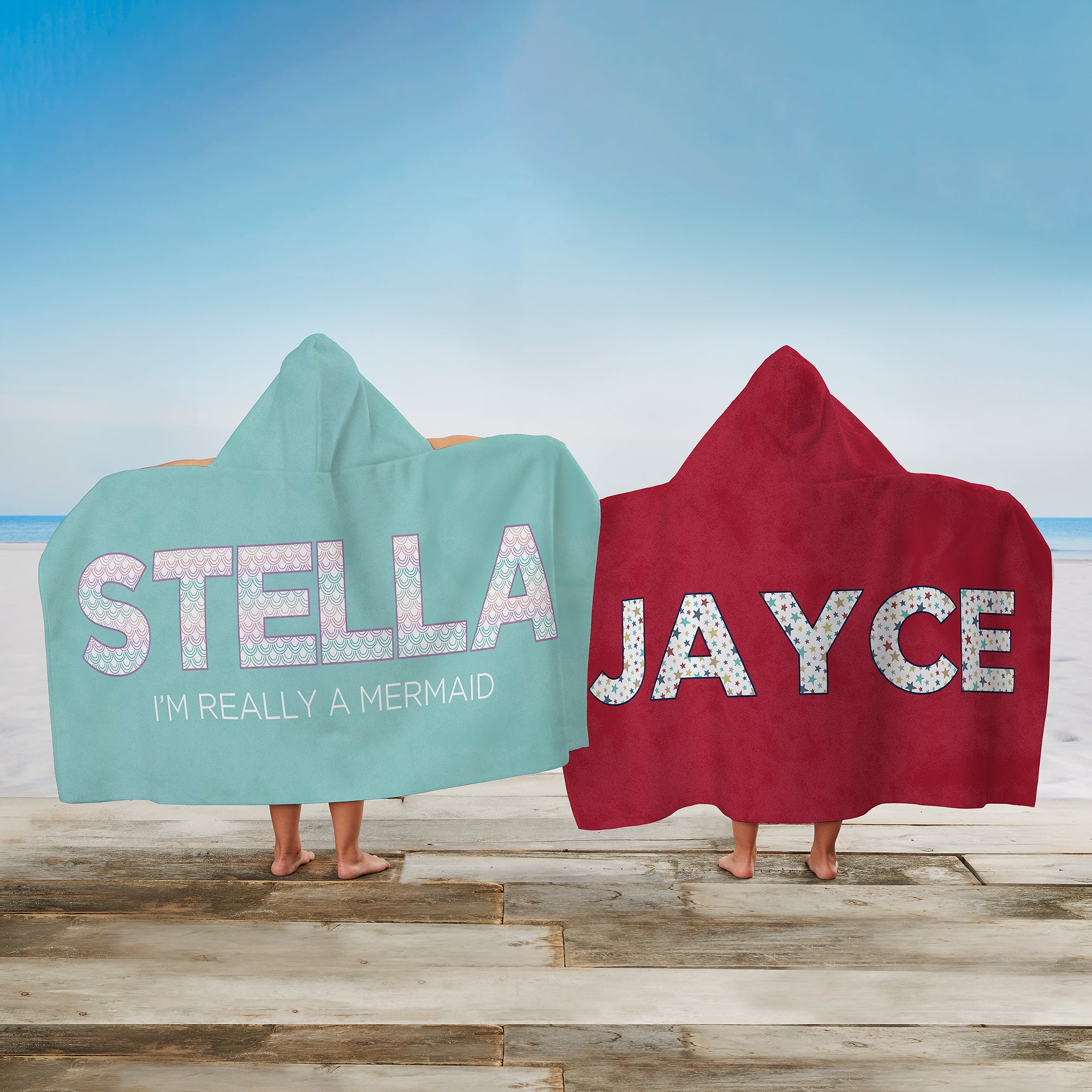 This personalized kids hooded towel makes for a fun bath piece for home, beach or pool side.