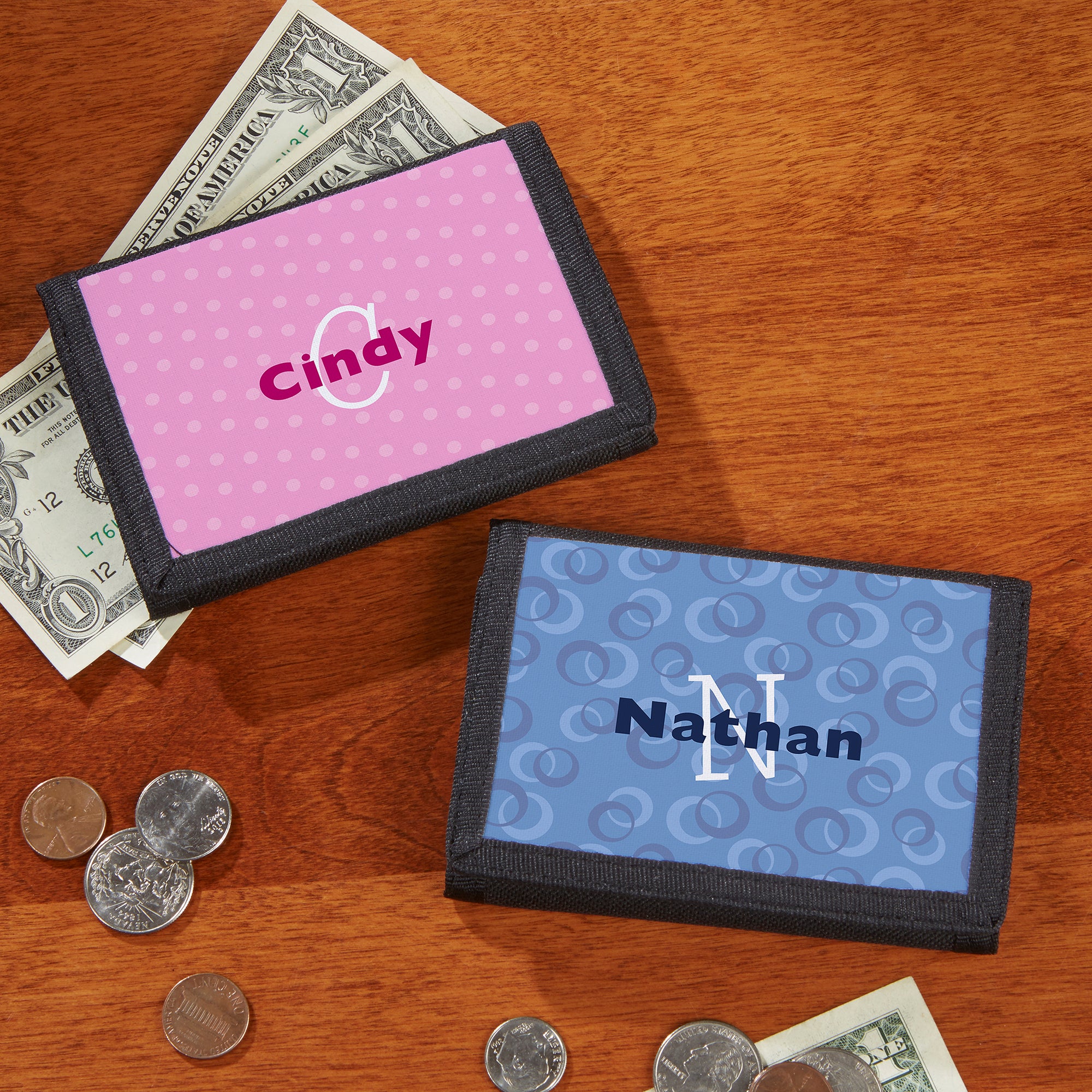 Let them carry their currency in personalized style with our Just Me Personalized Kids' Wallets! This tri-fold wallet with Velcro closure holds their important cards, IDs, and money.