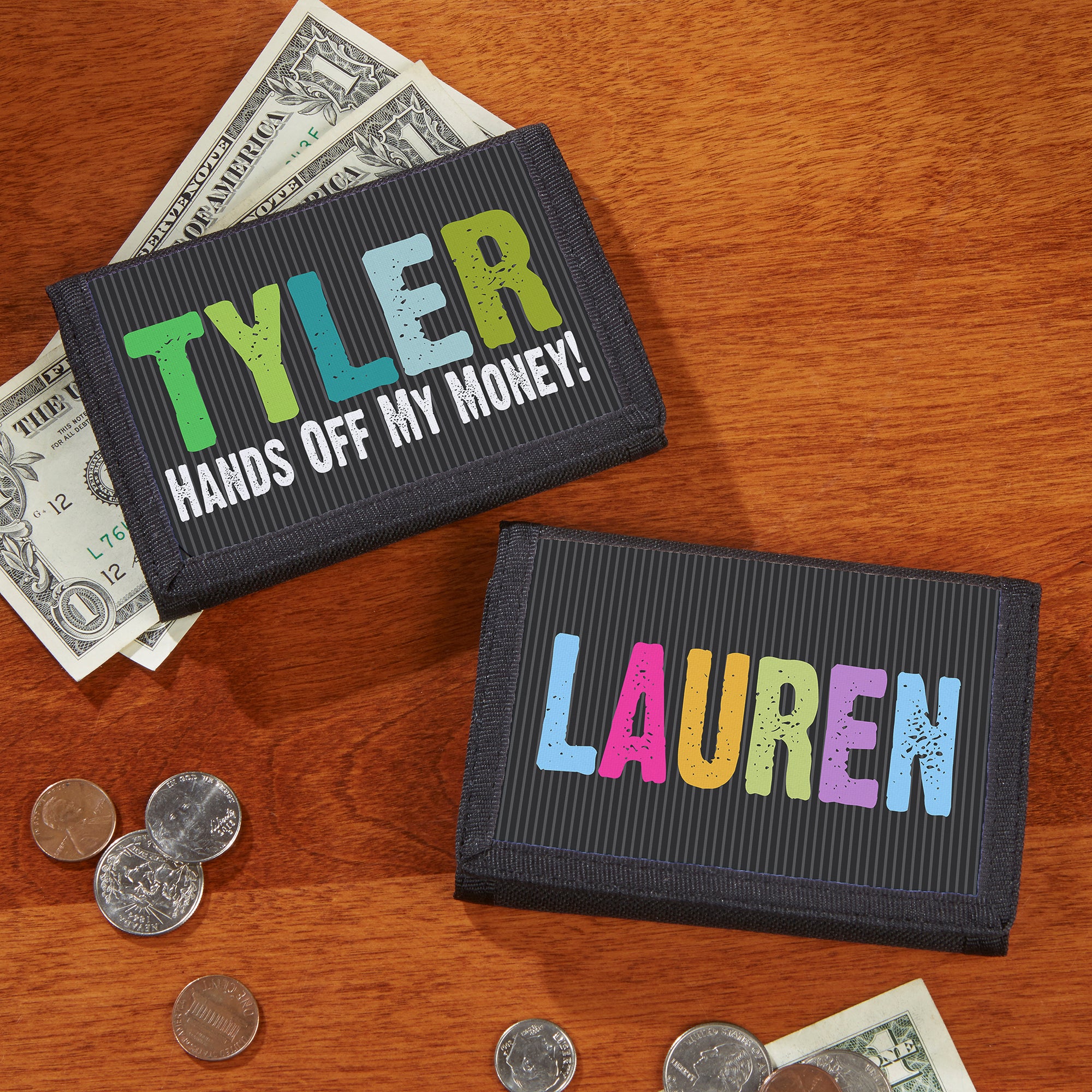 Now they can carry their currency in personalized style with our All Mine! Personalized Wallet! Tri-fold wallet holds their important cards, IDs, and money.