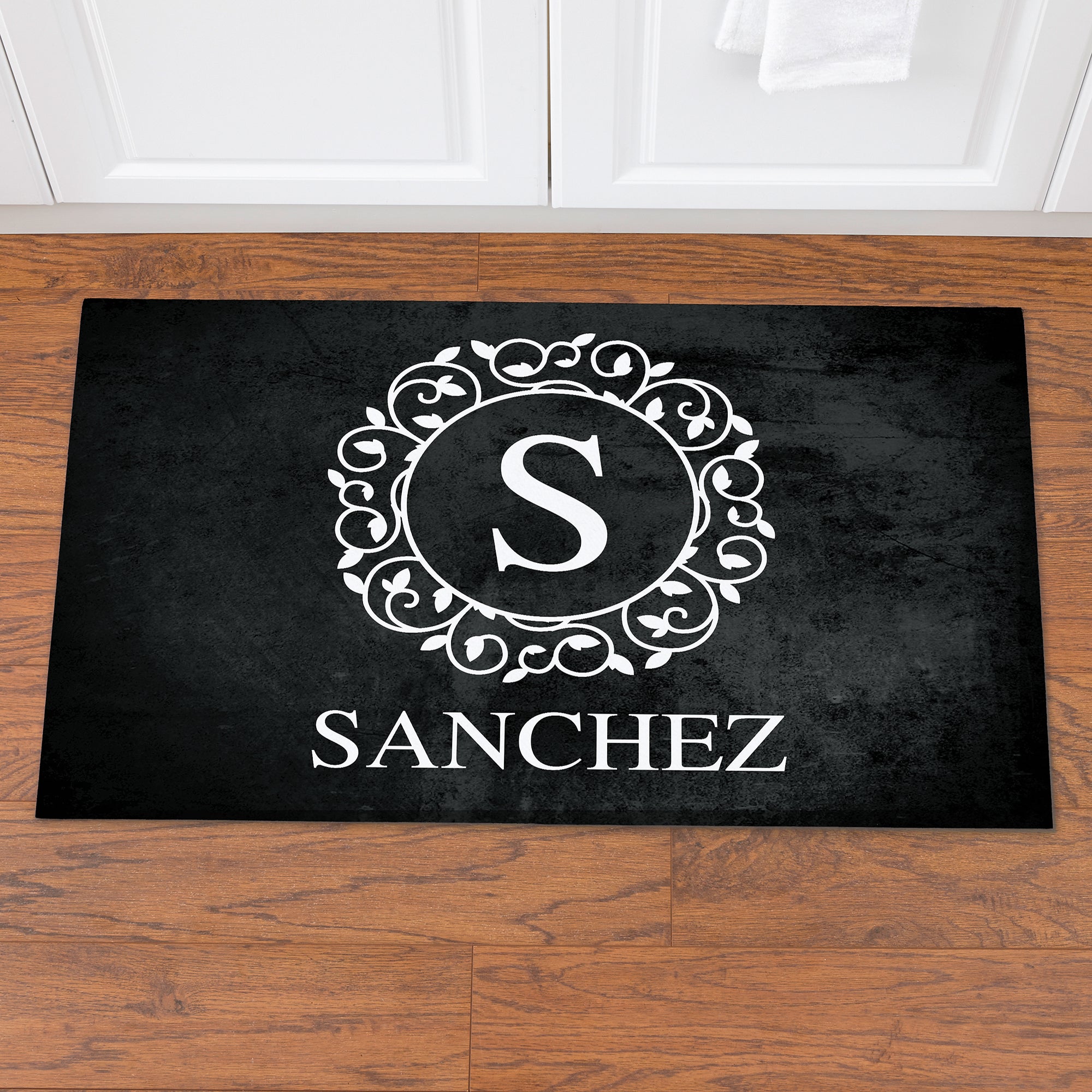 Add an elegant, distinctive touch to your kitchen with our Circle & Vine Monogram Personalized Kitchen Mats.