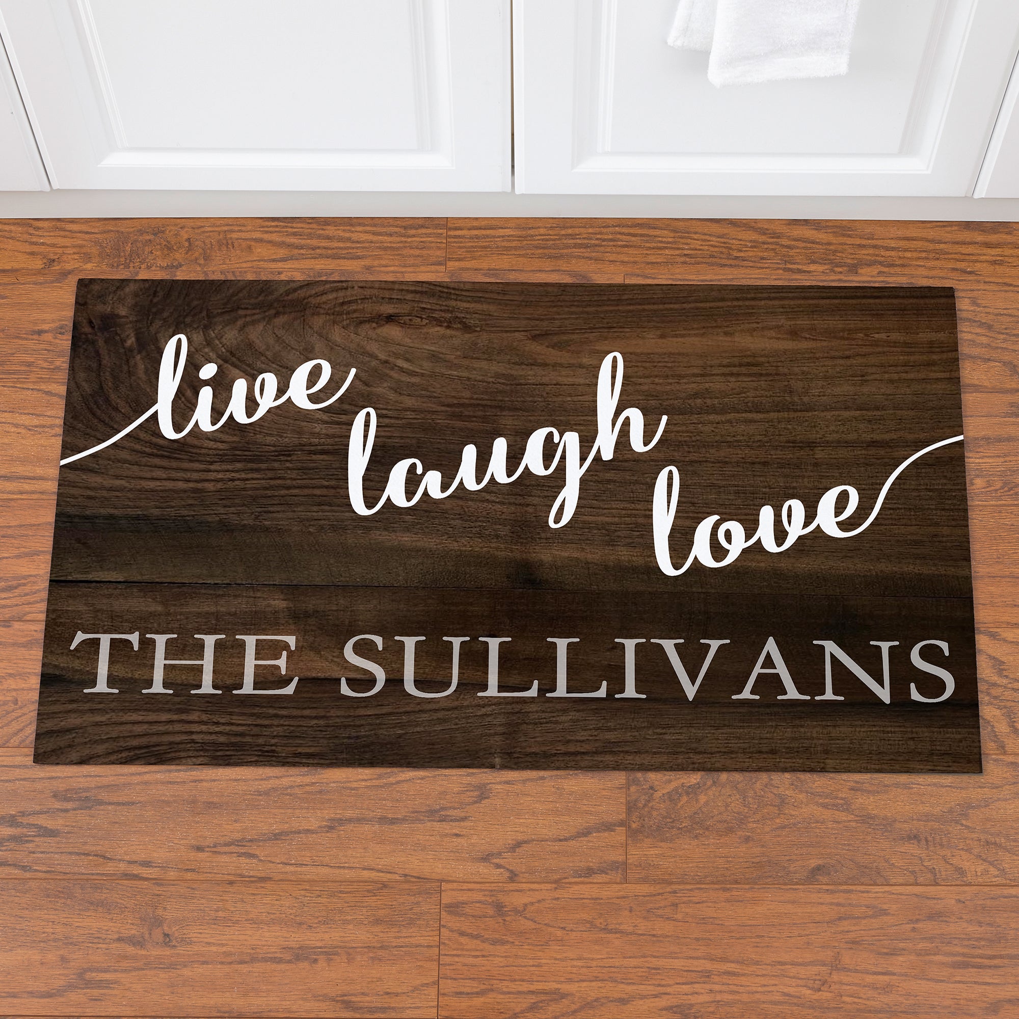 Create a loving addition to your kitchen for use year round with our Live, Laugh, Love Personalized Kitchen Mats.