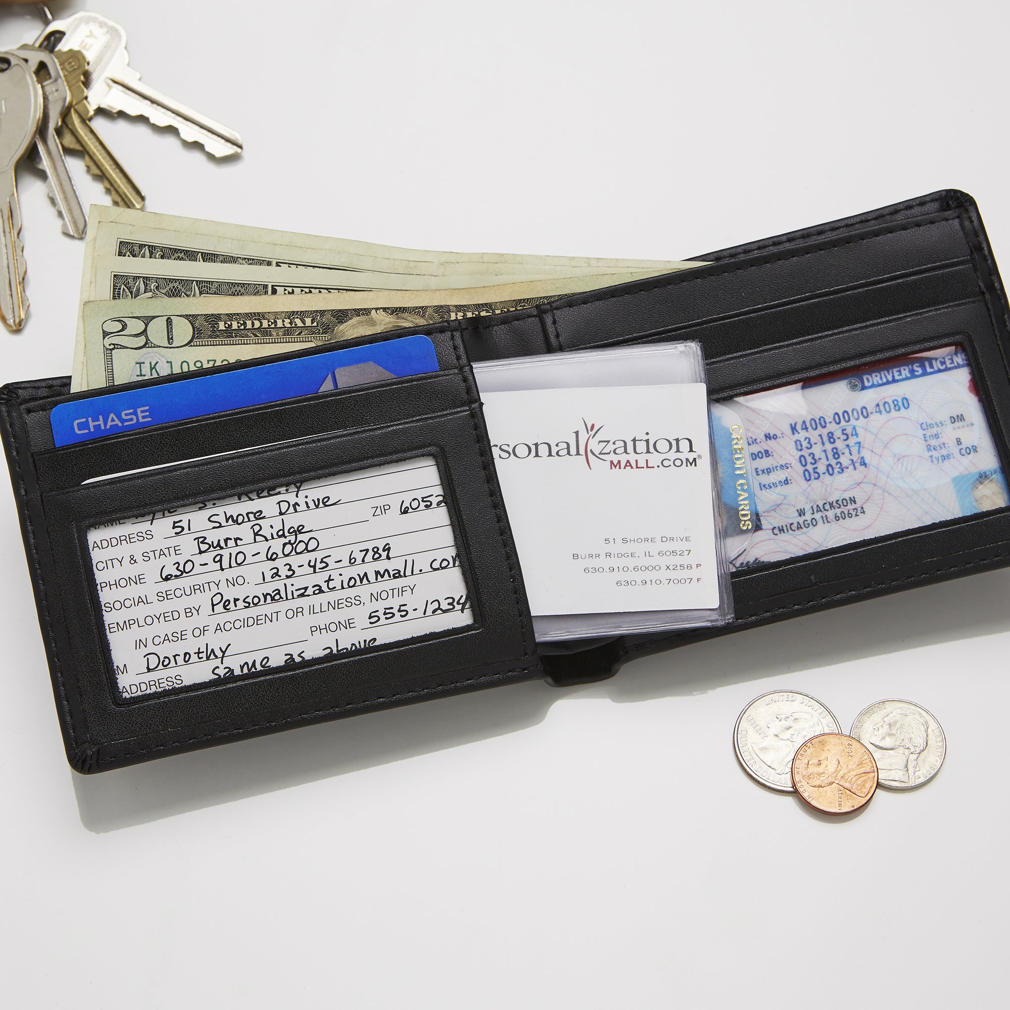 • Features 2 interior bill pockets, 6 card slides (2 with ID windows)