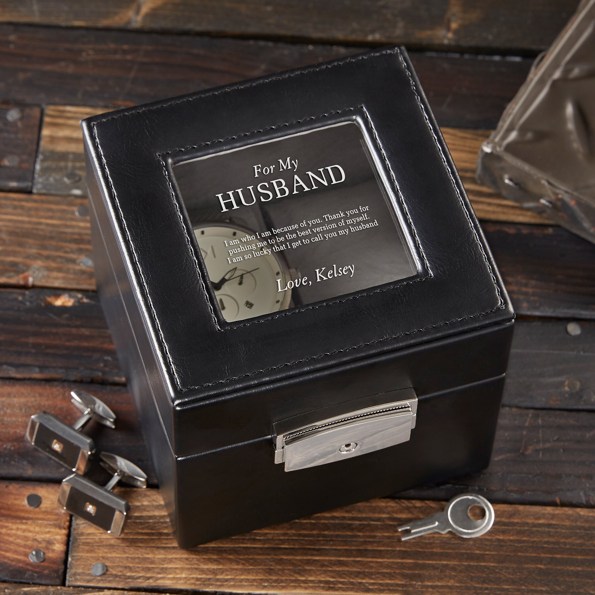 Let him know how special he is with our To My Husband Personalized Vegan Leather Watch Box. Available in three different sizes, this watch box makes a great gift for Father's Day, a birthday, retirement and many other occasions.