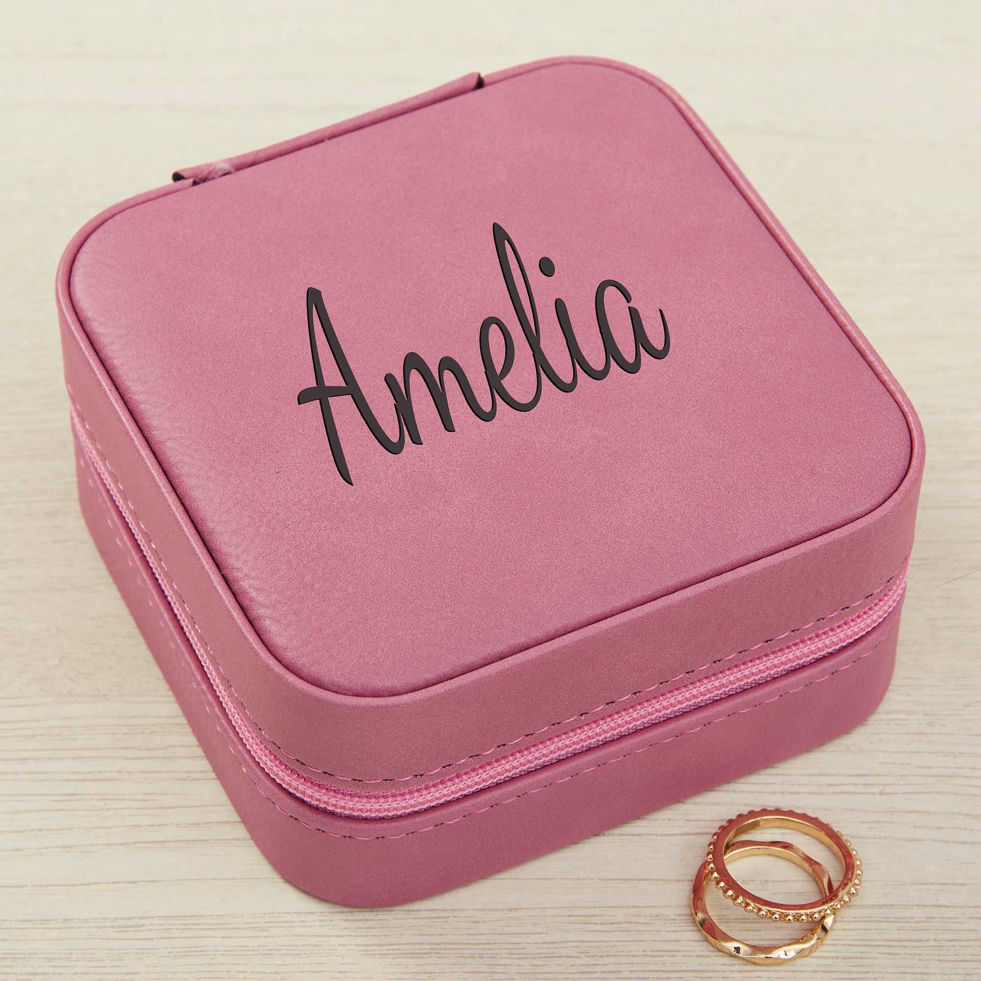 Product Information 41015-P - Classic Celebrations Personalized Leatherette Jewelry Case -Pink