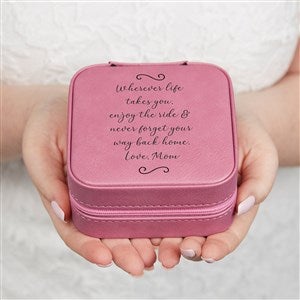 Sleek and elegant, the Write Your Own Message Personalized Leatherette Jewelry Case adds a sophisticated look to any dresser or vanity. Available in two colors, this jewelry box makes the perfect storage for small  jewelry and accessories.