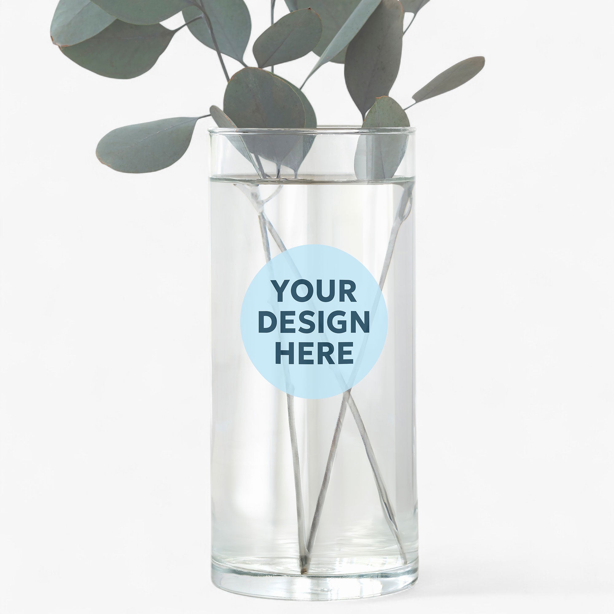 Perfect for any corporate event or office decor, the Personalized Logo 7.5" Cylinder Vase can be personalized with any name, logo, and/or text. Use for fresh flowers at any charity or corporate event, or keep in the workspace as a decoration.