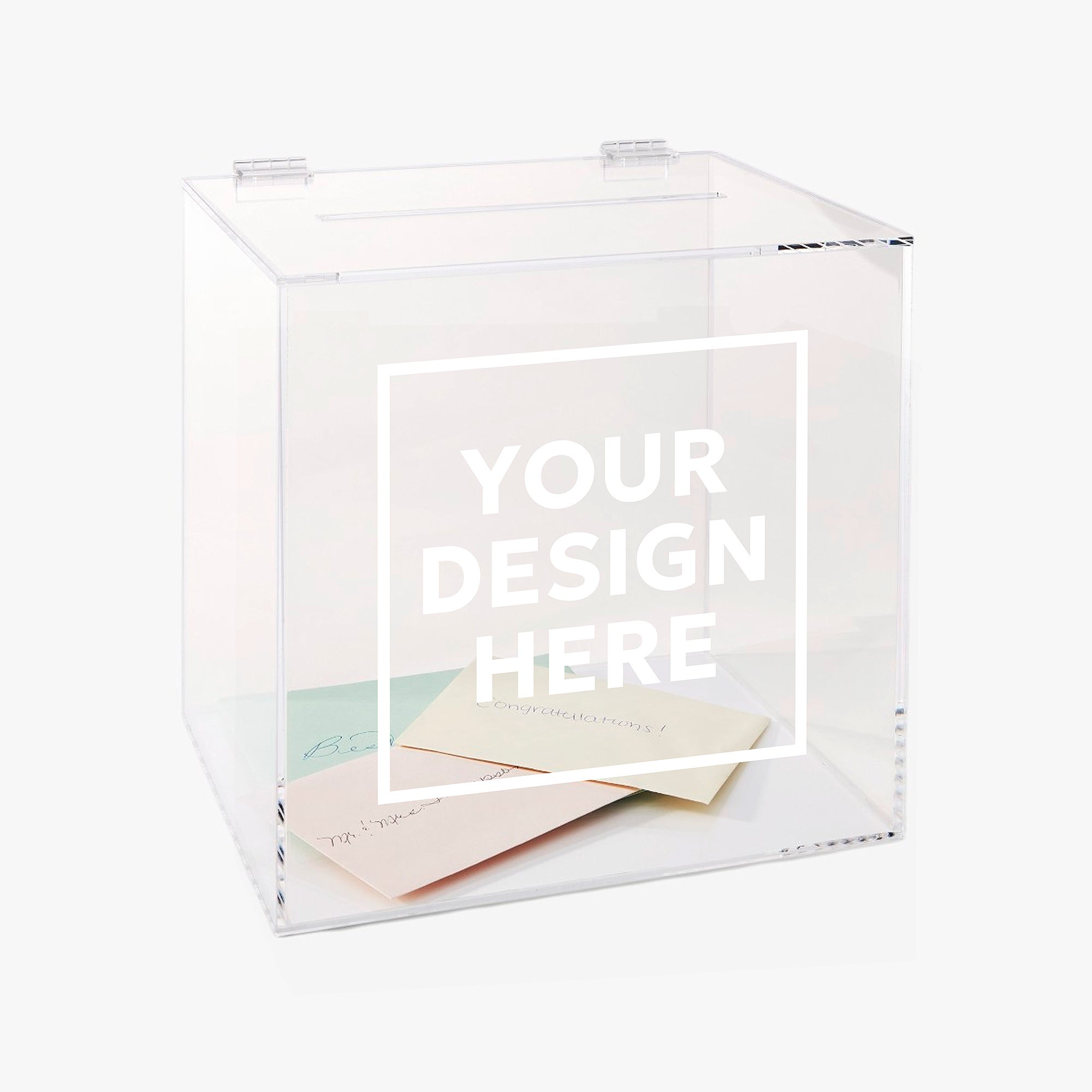 Create a custom company card box to use for office raffles, fundraising, or to collect cards for an employees birthday! Customize the Personalized Logo Acrylic Card Box with any name, logo, and/or text.