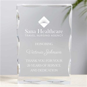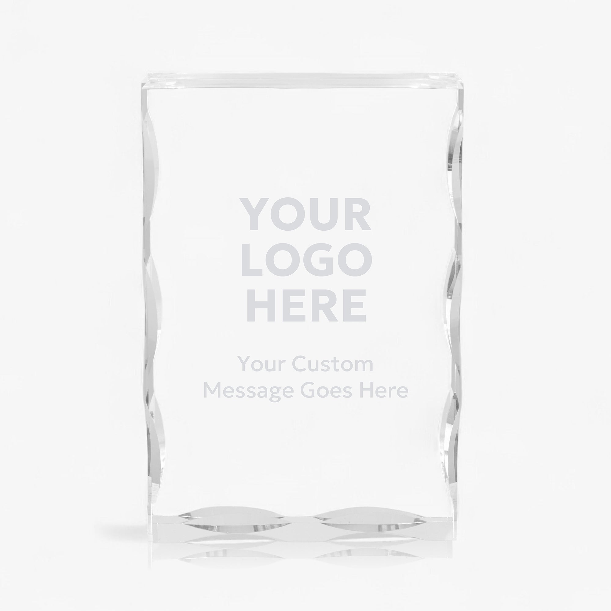 This scallop-edged, custom logo acrylic keepsake makes an excellent achievement plaque, nameplate, or recognition award for the desktops of your business associates.