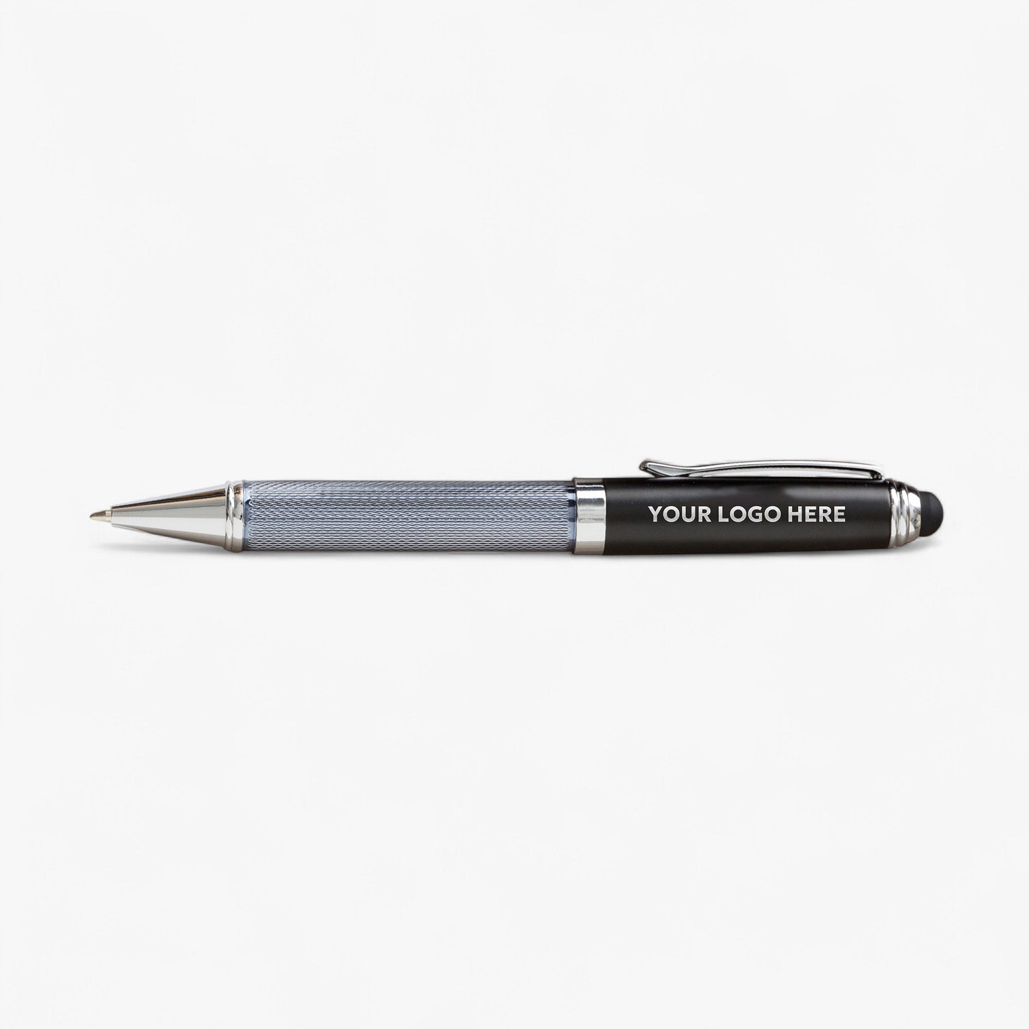 Our Black Stylus Ball-Point Pen has a multi-purpose, featuring a stylus tip on one side and a pen on the opposite side.