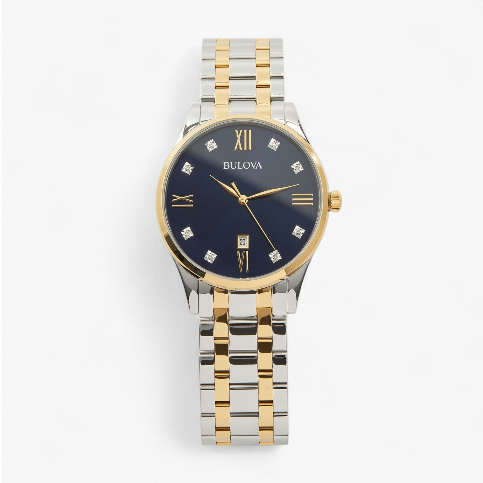 - Bulova men's blue dial two tone watch from the Bulova Diamonds Collection