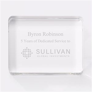 Gift the Personalized Logo Crystal Rectangle Paperweight to show appreciation for your company's hard workers. Custom engraved with any name, logo, and/or text.