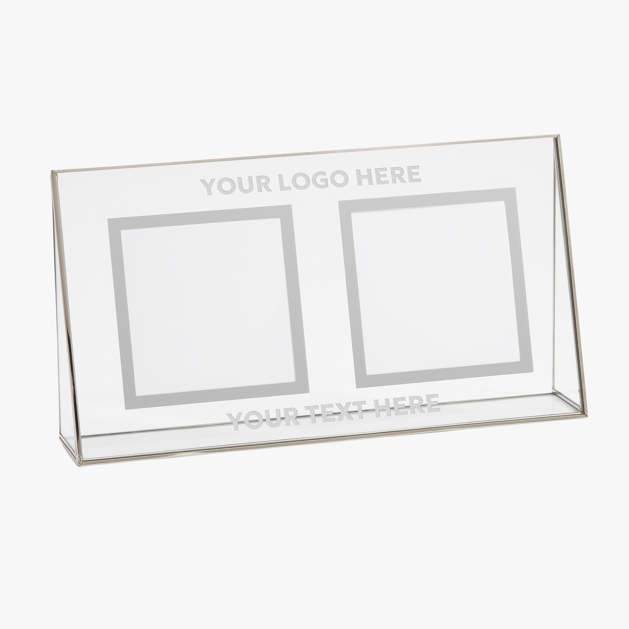 Gift the Personalized Logo Double Photo Glass Frame to your hardworking employees. They will love being able to personalize their workspace with photos of their families, pets, or loved ones. Personalize with any name, logo, and/or text above or below photos.