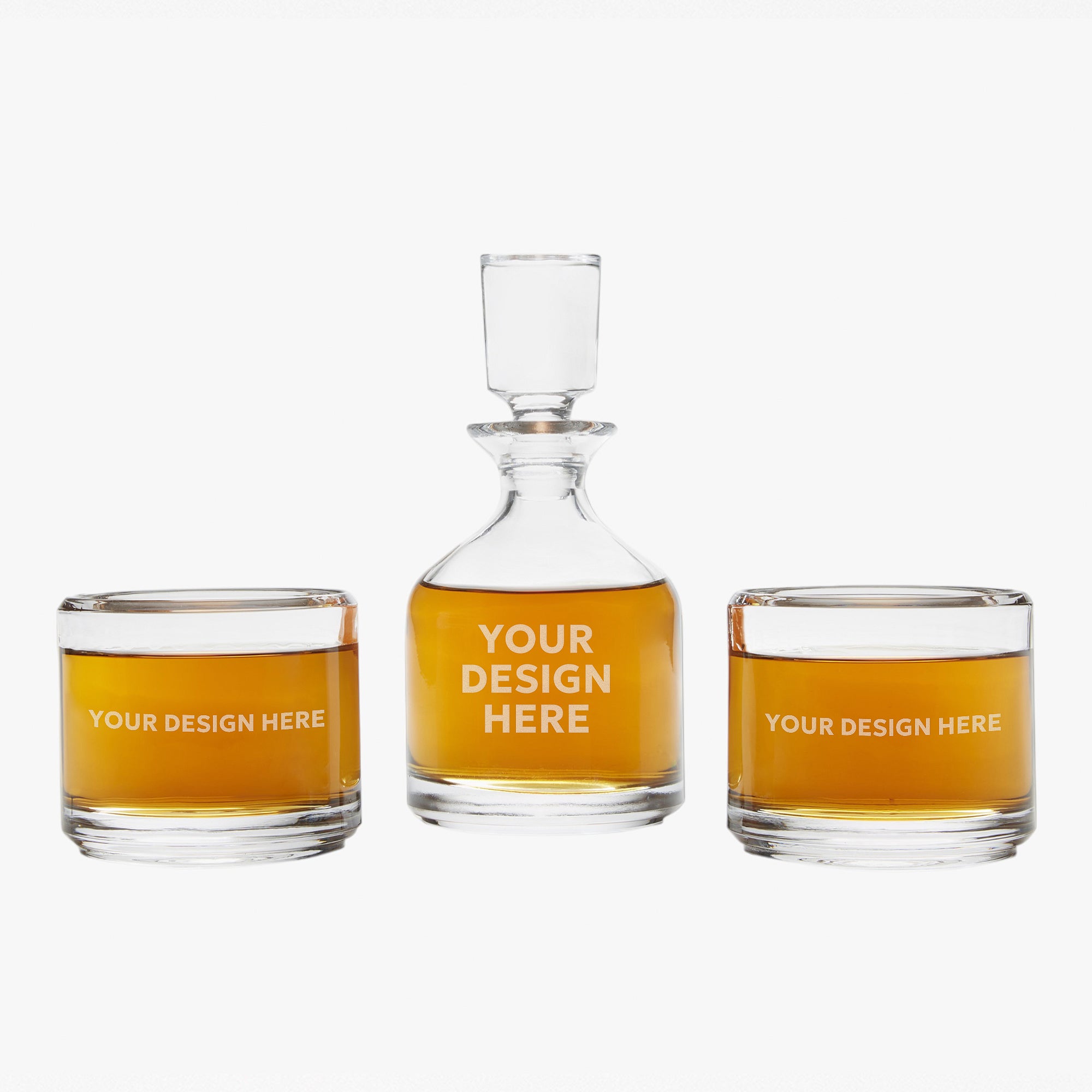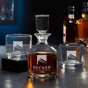 The Personalized Logo Duet 8.5 oz. Stacking Decanter Set is great for entertaining and is the perfect bar countertop accent to keep on display.