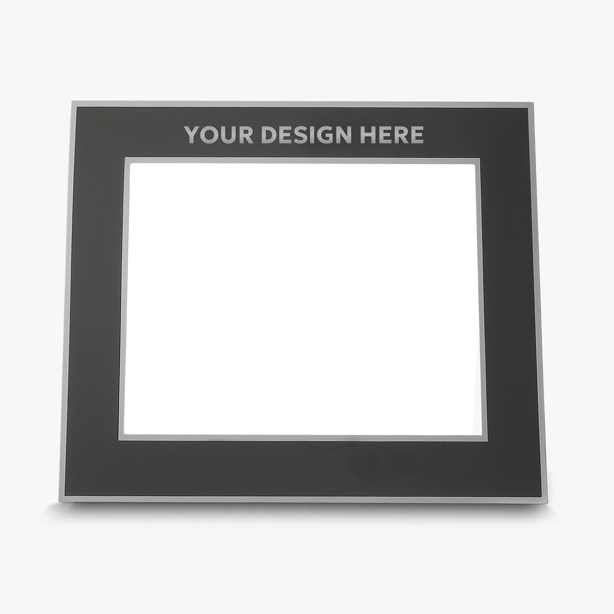 - Personalize above and below photo slot with any name, logo, and/or text