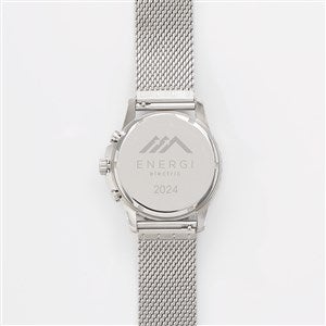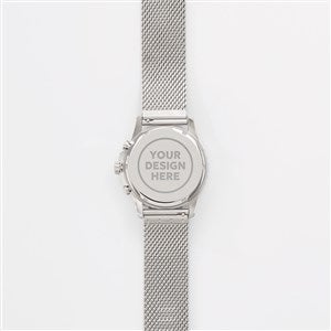 The Personalized Logo Fossil Neutra Chronograph Watch and Bracelet Set makes a unique gift for your top employee, or is a great way to show your appreciation for their hard work. This watch features a silver mesh strap and a black leather multi-strand bracelet. Engrave the back of the watch with any name, logo, and/or text.The items come beautifully displayed in Fossil's special gift tin.