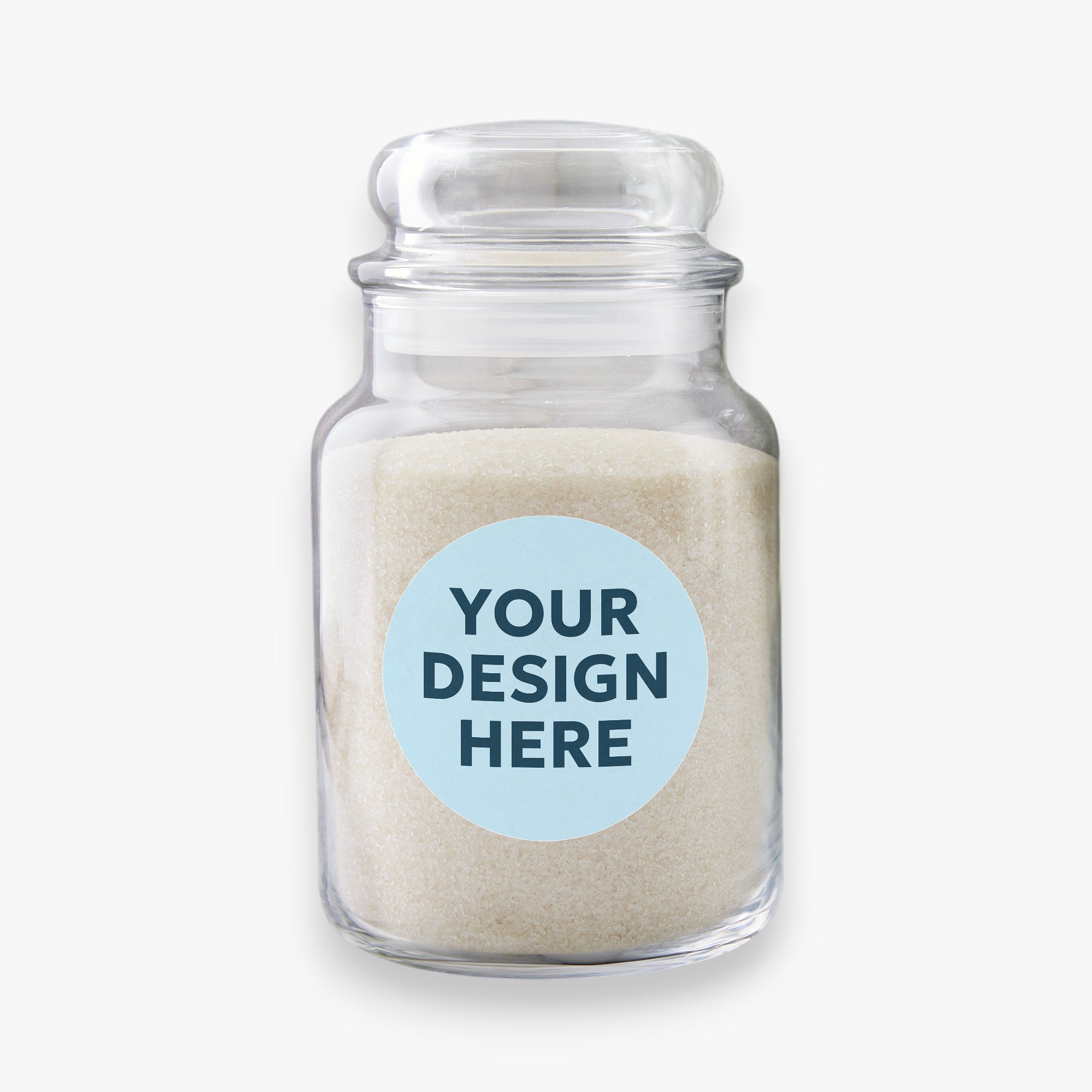 Create a custom sugar, flour, or coin jar with the Personalized Logo Glass Jar. This versatile jar can be used as a container for multiple things, making it a practical gift for your clients. Printed with any name, logo, and/or text.
