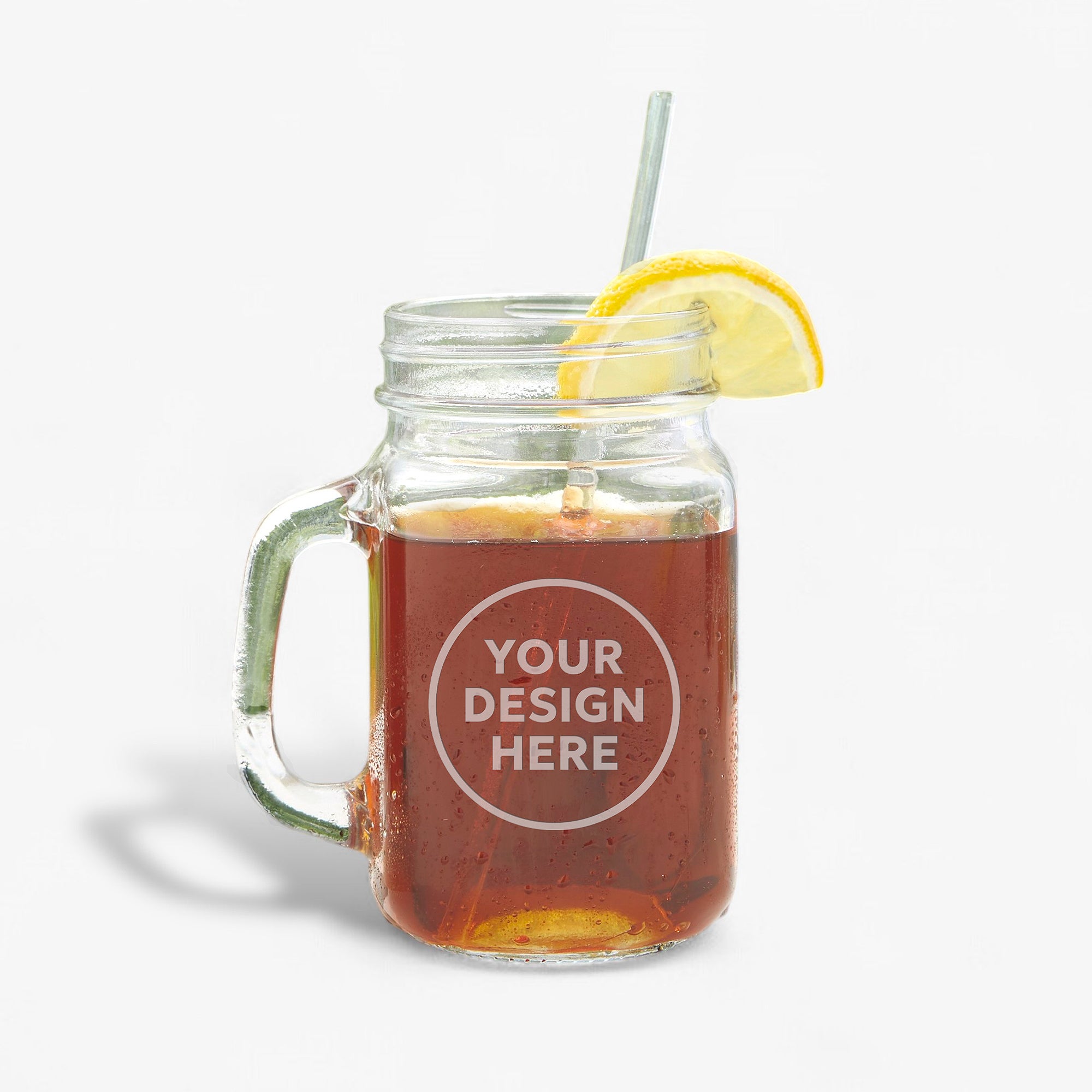 Whether you're celebrating a company cookout or creating a promotional gift box, the Personalized Logo 16oz Glass Mason Jar makes for the perfect drinkware to rep your company. Custom engraved with any name, logo, and/or text.