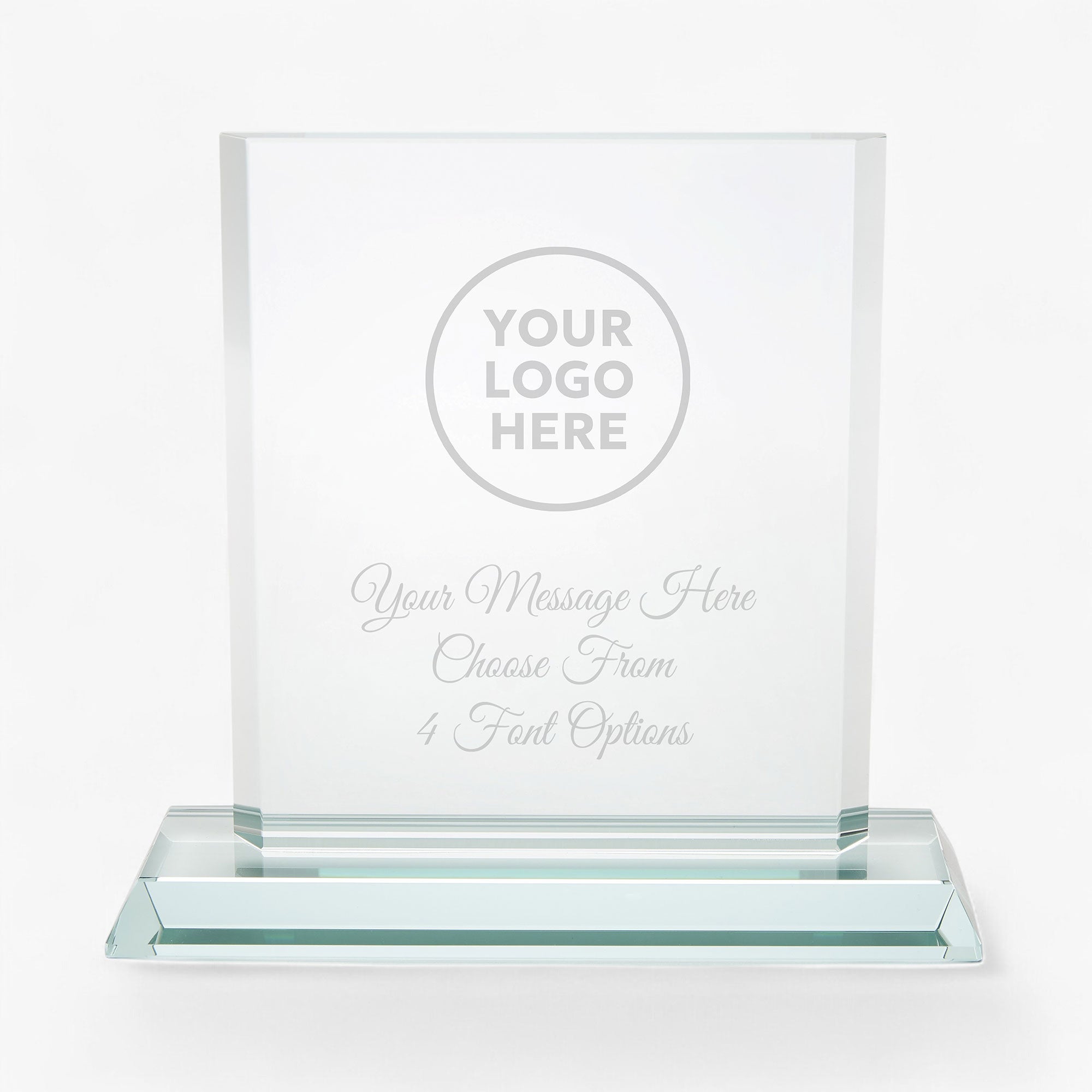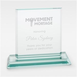 The Personalized Logo Jade Glass Block Award in size medium is an elegant and timeless award. Custom engraved with any name, logo, and/or text, this award can be purchased in sized small or large as well, and makes for a wonderful award to present.