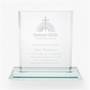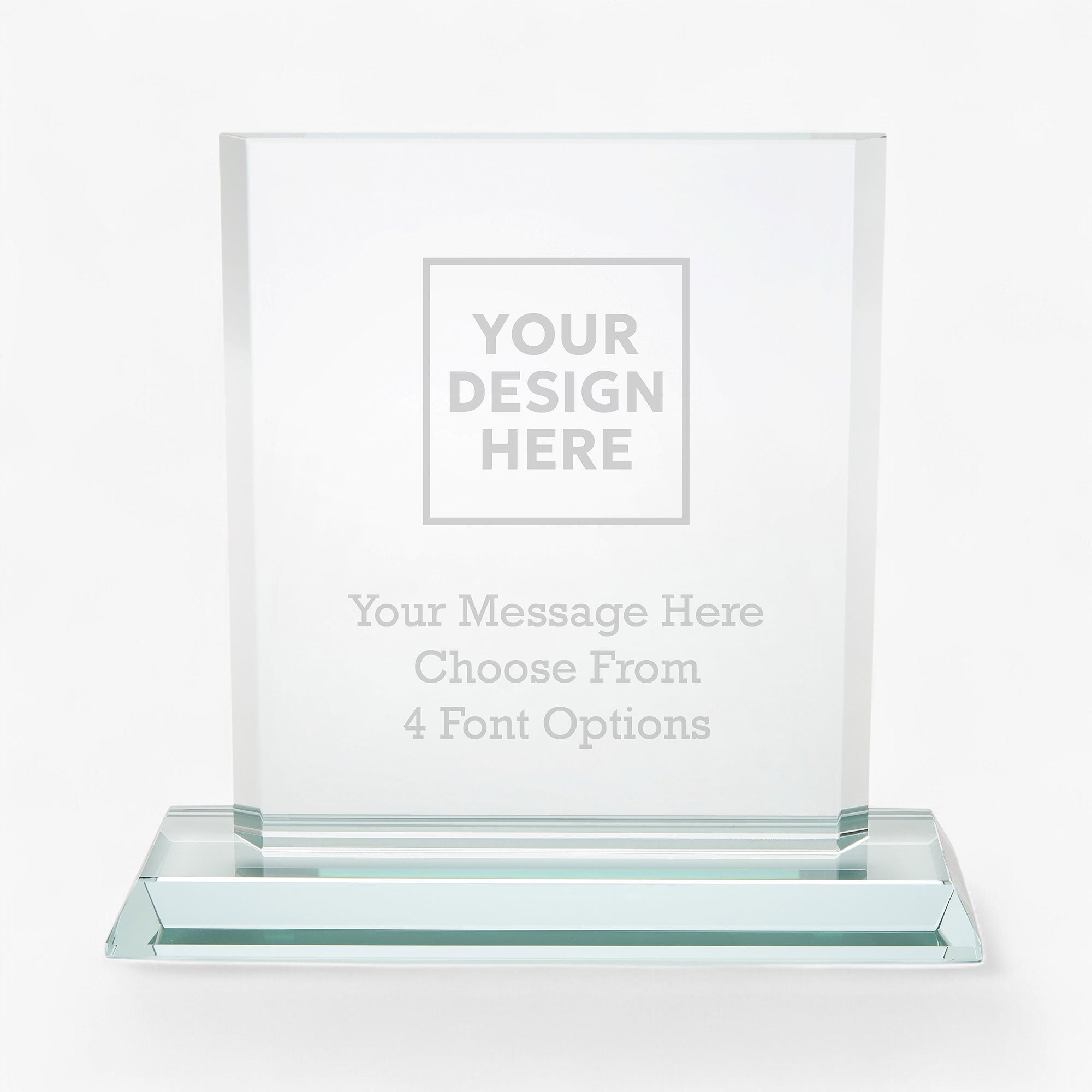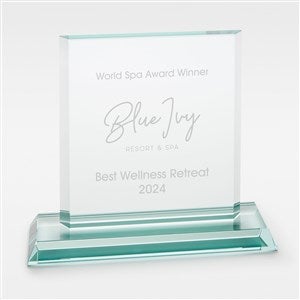 Recognize your team or employees hard work and accomplishments with the Personalized Logo Jade Glass Team Award-Large. Custom engraved with any name, logo, and/or text, this large award measures 8"H x 8.5"W x 2.75"D.