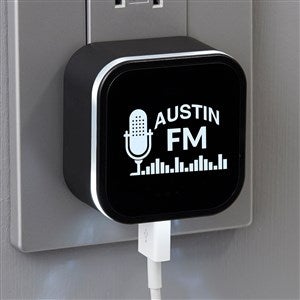 - Plugs directly into standard Type A wall outlets; will only line up with personalization right side up using a vertical outlet (see photo)