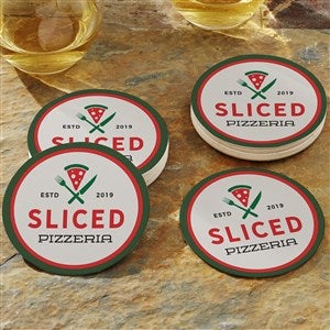 Style your office lounge with the Personalized Logo Paper Coaster Set. Includes paper coasters and acrylic coaster holder. Customize with any name, logo, and/or text.