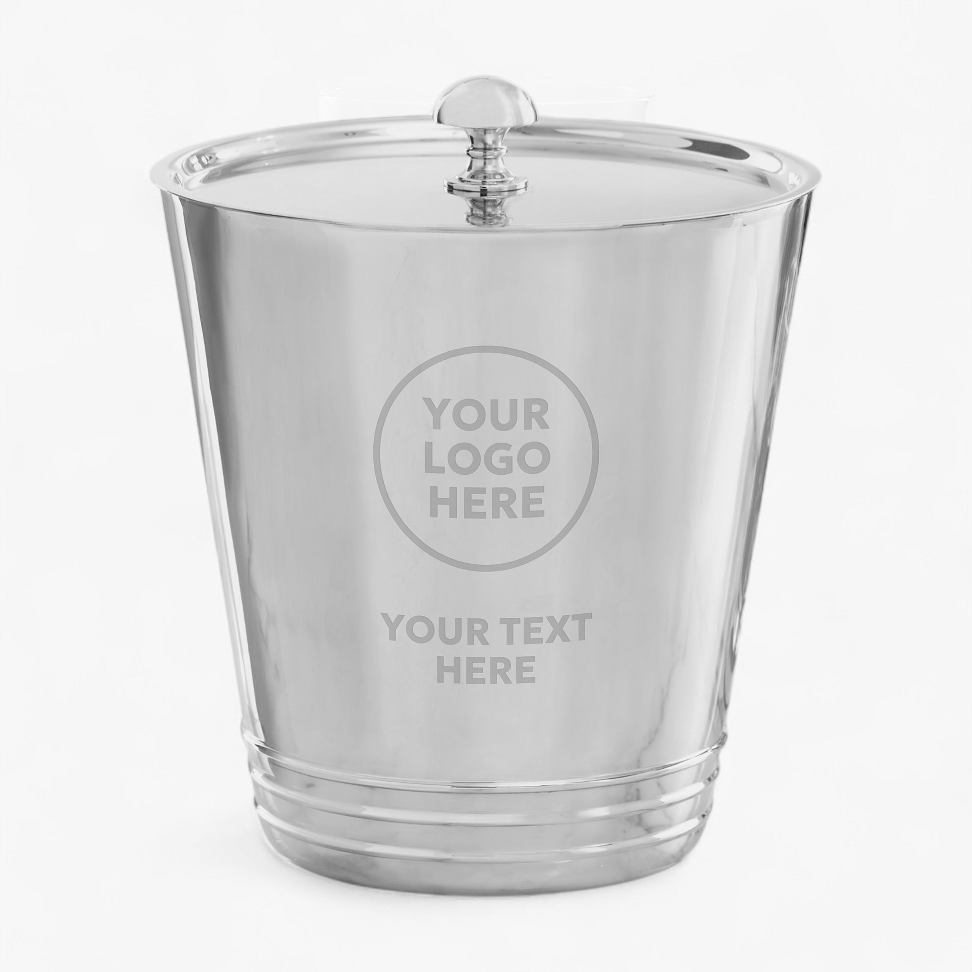 Our fine, stainless steel Personalized Logo Silver Ice Bucket adds a classic touch while entertaining clients. This ice bucket can also be gifted, or used in any bar or restaurant. Personalize with any name, logo, and/or text.