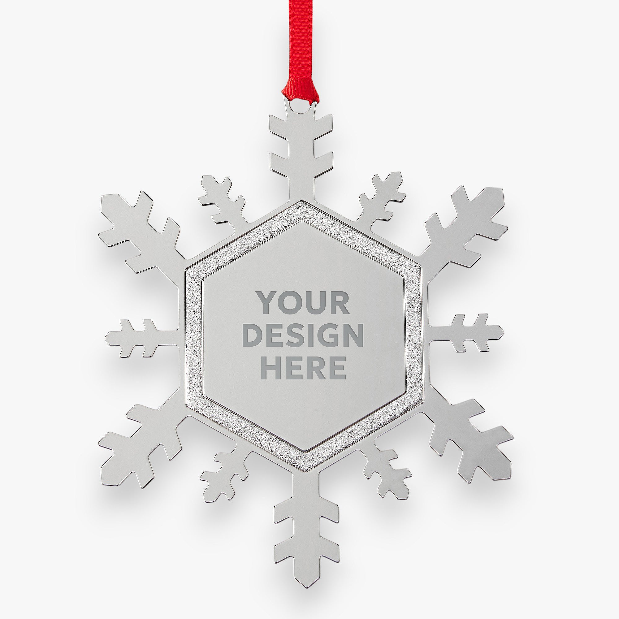 The Personalized Logo Silver Snowflake Metal Ornament is a fun and festive way to gift them a personalized message they'll love to see on their tree for years to come. This silver-tone metal can be engraved on the front and back with any name, logo, and/or text. This ornament makes a great family, hostess, or office holiday gift!