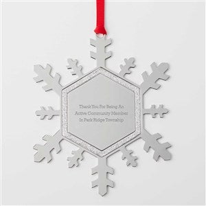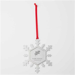 The Personalized Logo Silver Snowflake Metal Ornament is a fun and festive way to gift them a personalized message they'll love to see on their tree for years to come. This silver-tone metal can be engraved on the front and back with any name, logo, and/or text. This ornament makes a great family, hostess, or office holiday gift!