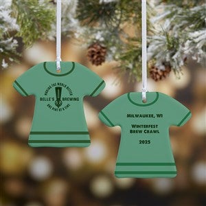 Create a custom ornament with the Personalized Logo T-Shirt Ornament. This double sided ornament shaped as a T-shirt can be printed to look like a sports jersey, work uniform, or printed with any name, logo, and/or text.