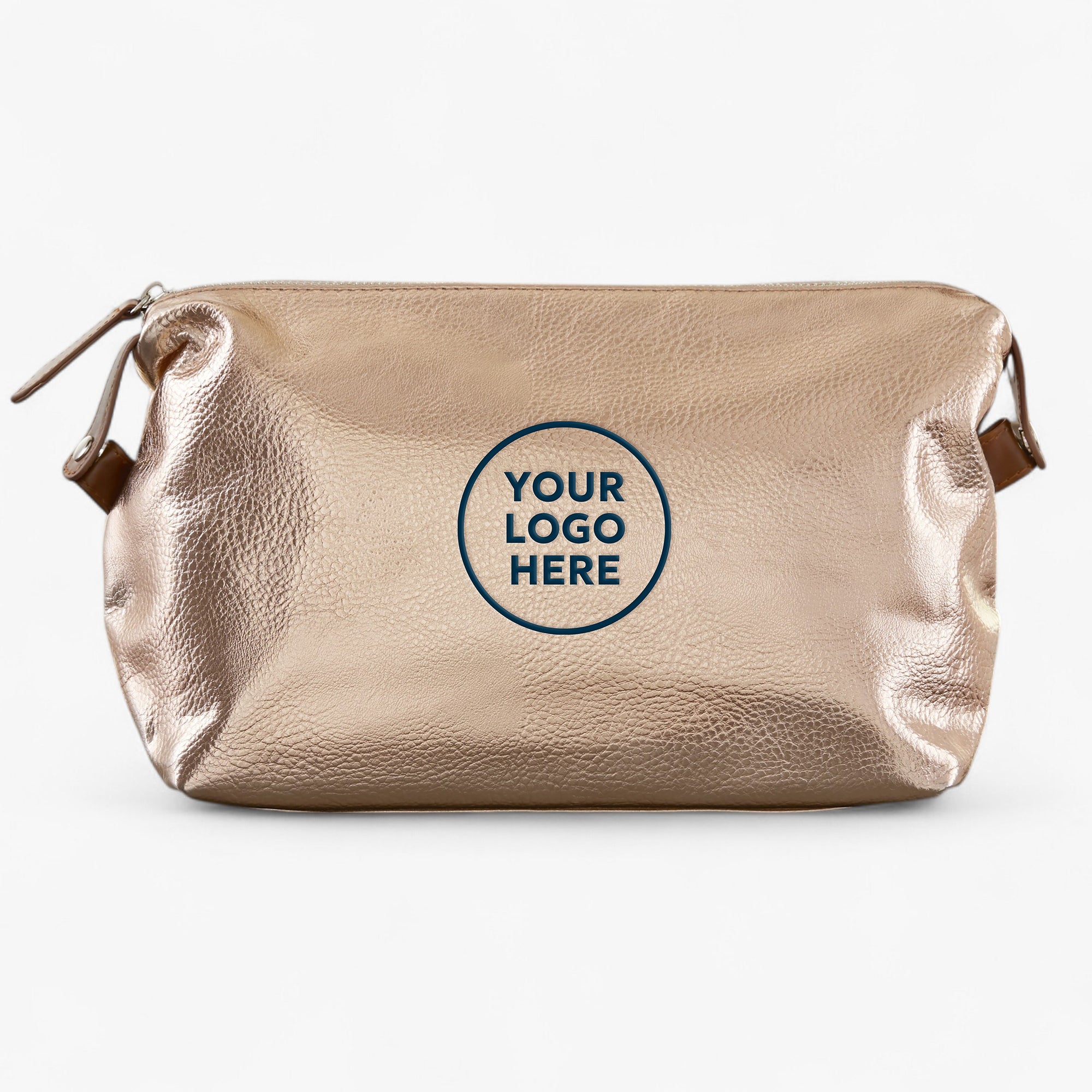 Personalized Logo Vegan Leather Cosmetic Travel Case- Rose Gold