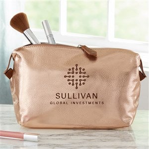 Treat your employees, clients, or customers with the Personalized Logo Vegan Leather Cosmetic Travel Case. Customize with any name, logo, and/or text.