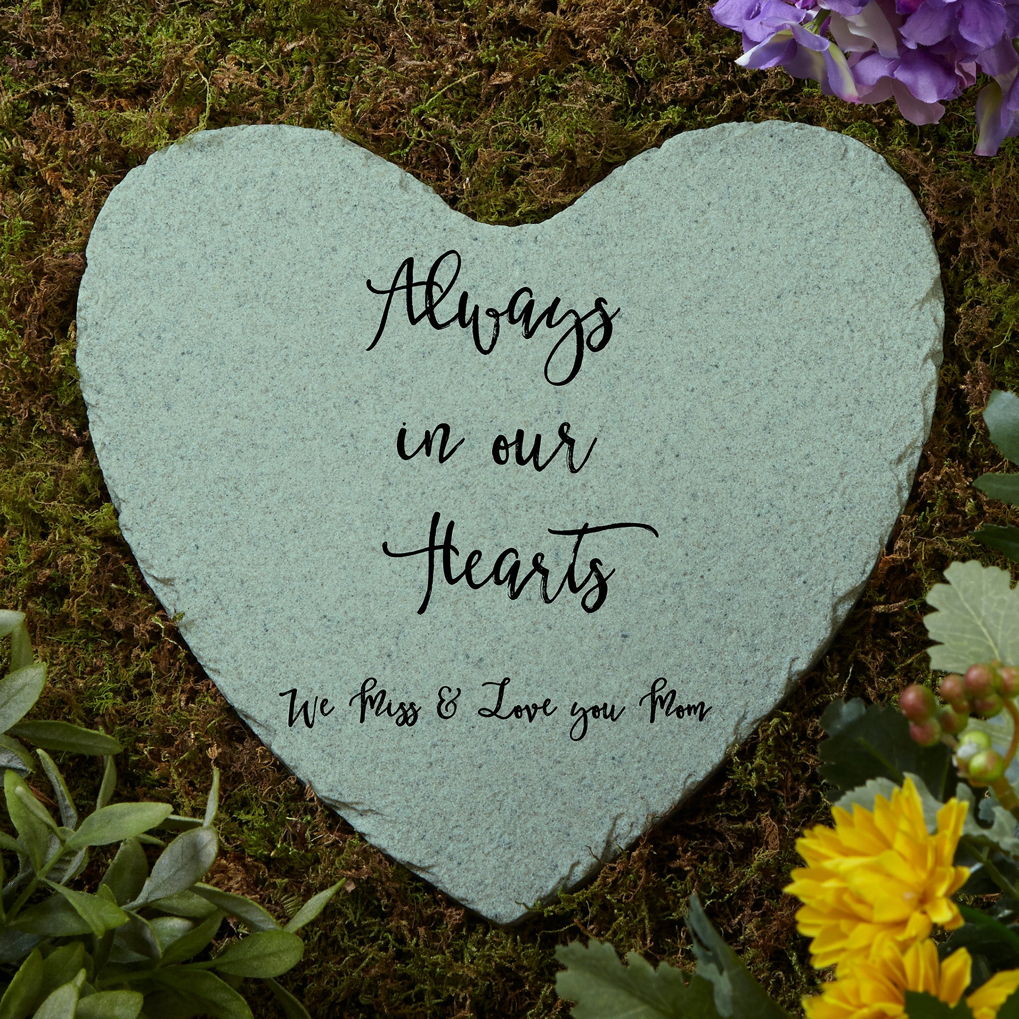 Even though they lost a loved one, you can still express love with sincerity and thoughtful words with our exclusive Memorial Expressions Personalized Heart Garden Stone.