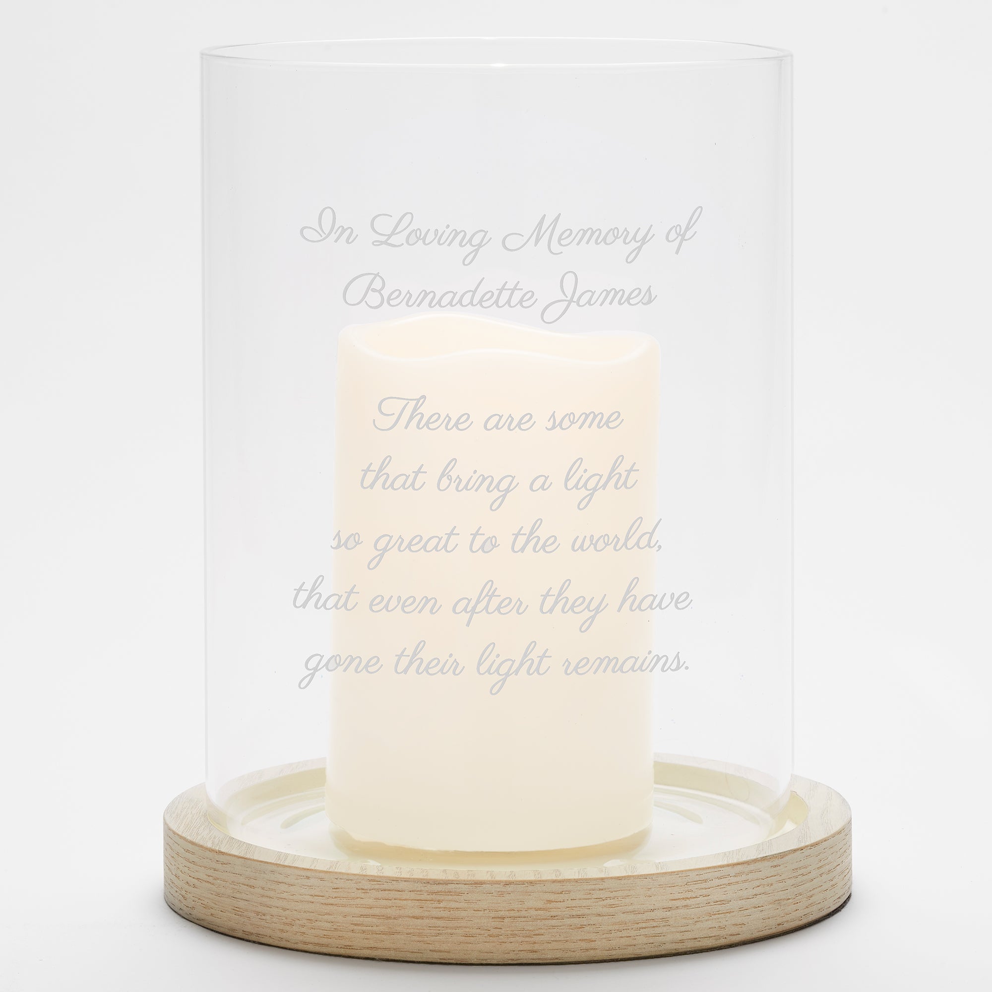 Engraved Memorial Hurricane Candle Holder with Wood Base