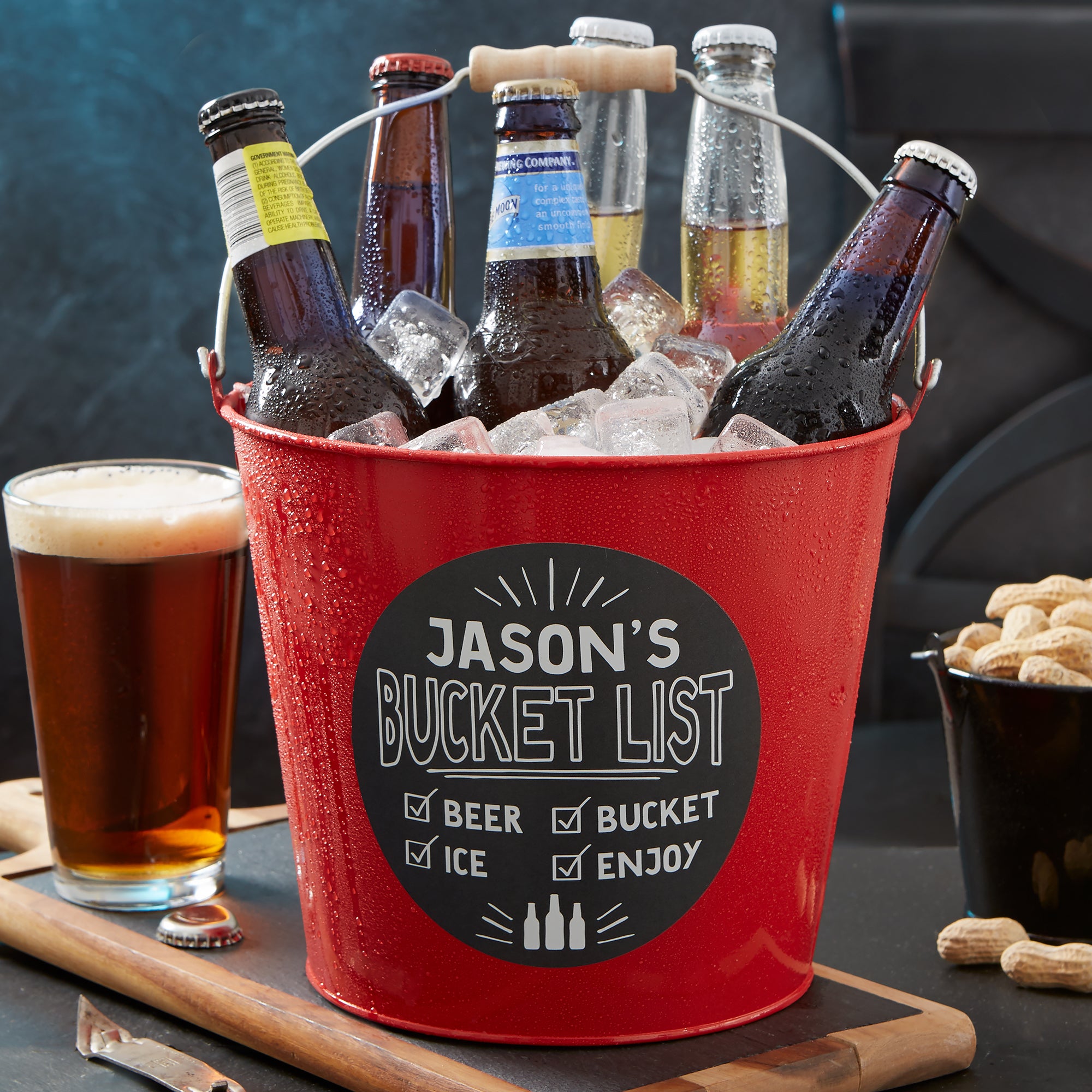 Fill our fun and unique Bucket List Personalized Metal Beer Bucket with beer bottles to create the perfect gift for any beer lover! We provide the bucket, you provide the beer!