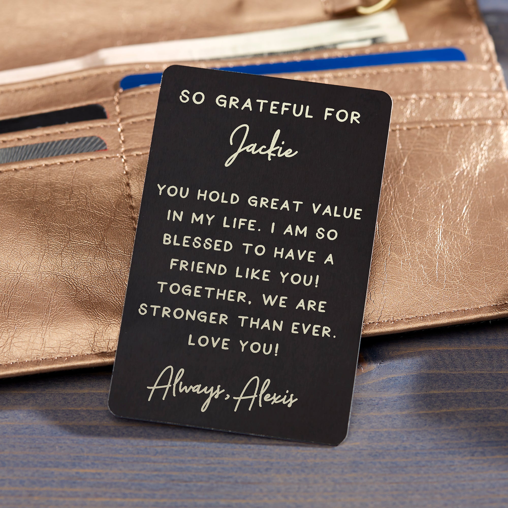 Show them how grateful you are for them with our Grateful For You Personalized Metal Wallet Card.