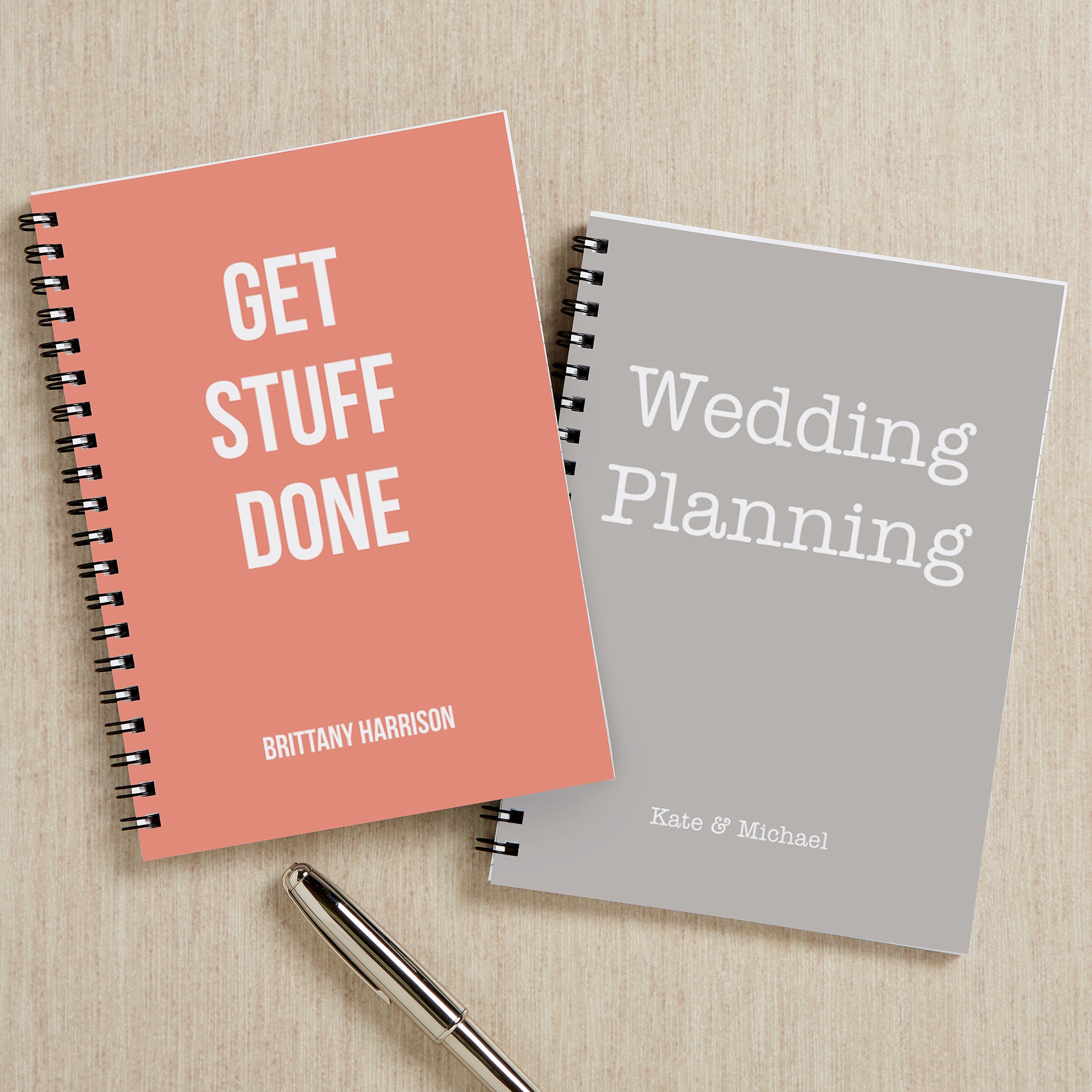 - Personalize with up to three lines of text and an additional line of text at the bottom of each notebook