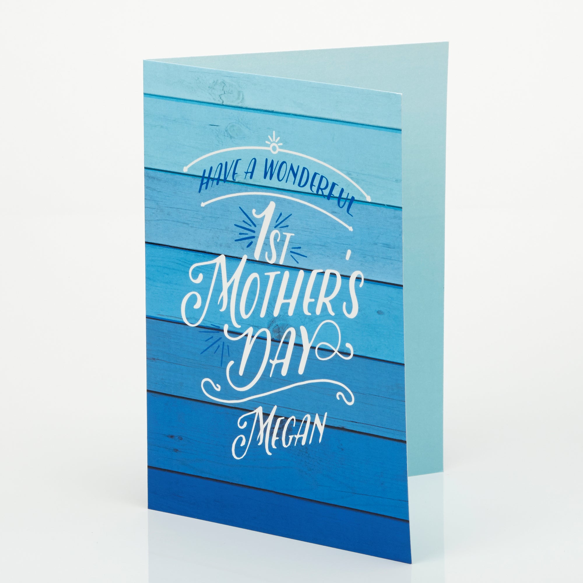 Enter any 1 line message above the words 1st Mother's Day and any name featured below the phrase. Choose from 2 color options making it a card she will love to receive.